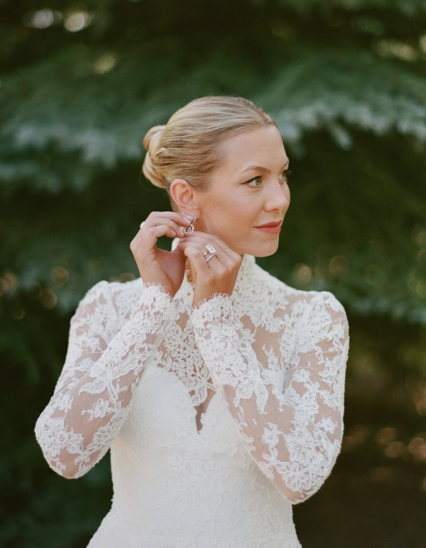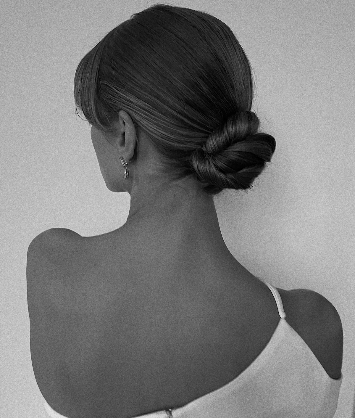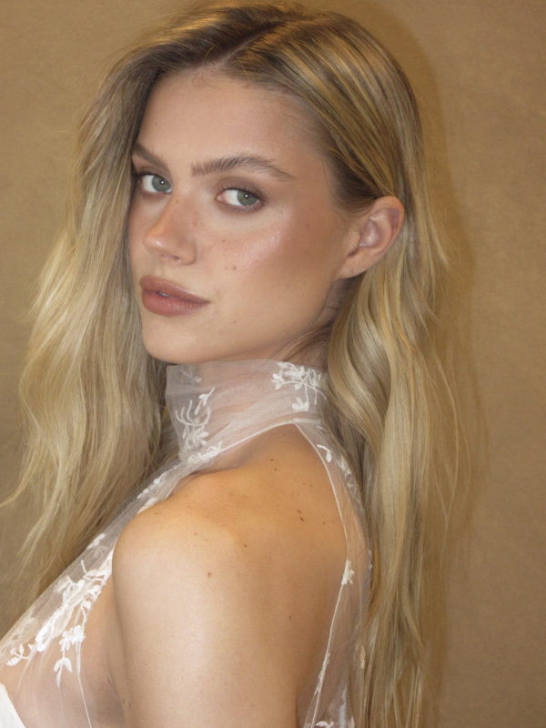 Beautiful, dewy skin with a hint of sparkling eyeshadow and natural eyelashes has become a signature look for Maria’s Brides. In addition with minimalistic, effortless hairstyle.