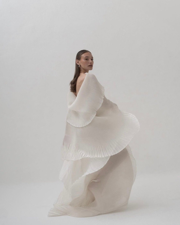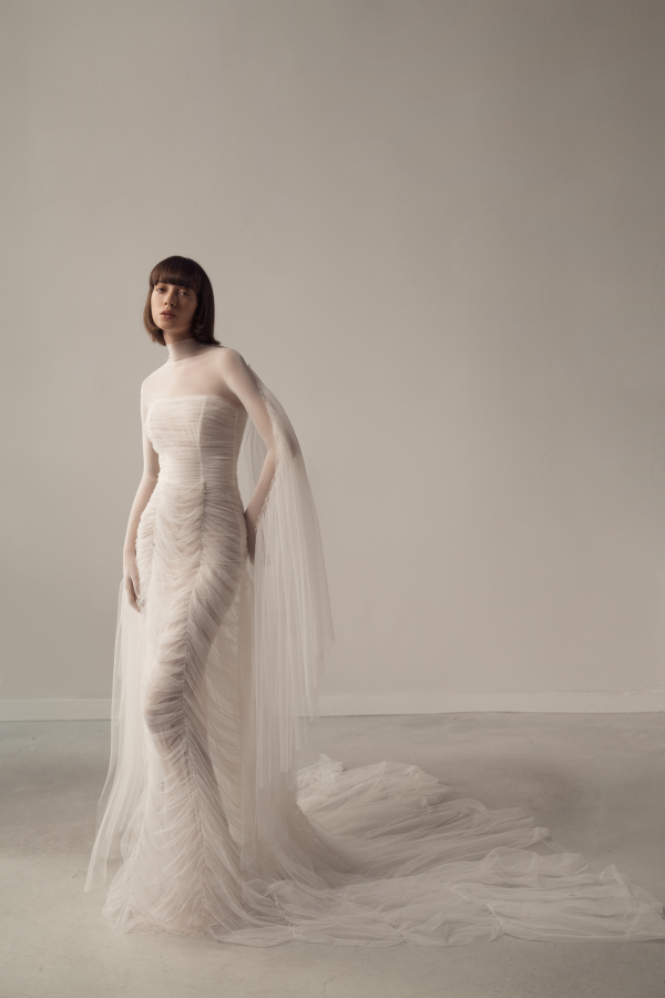 While she now designs without the constraints of traditional modesty, echoes of her past influence her contemporary creations. Each gown masterfully reveals skin in ways that harmonize with her design philosophy, celebrating and flattering the female form.