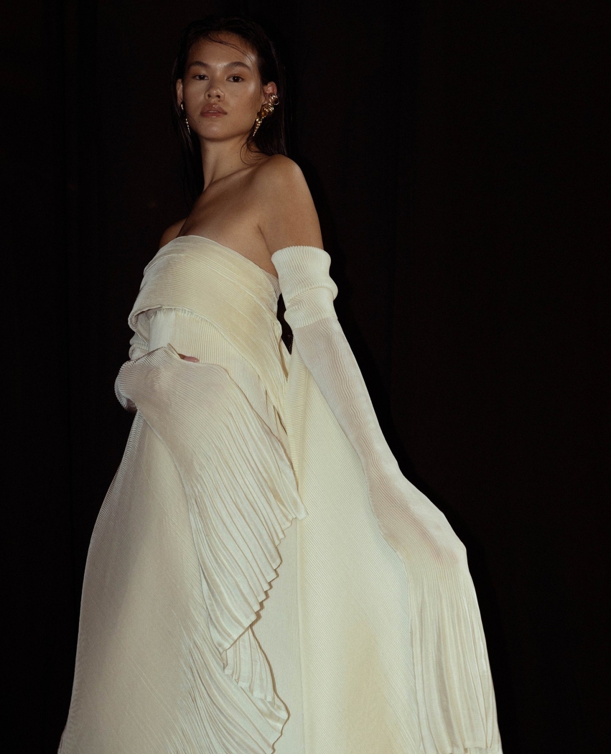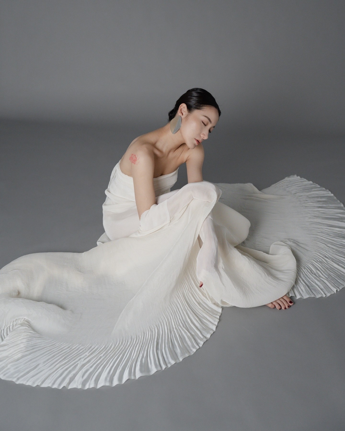 While she now designs without the constraints of traditional modesty, echoes of her past influence her contemporary creations. Each gown masterfully reveals skin in ways that harmonize with her design philosophy, celebrating and flattering the female form.