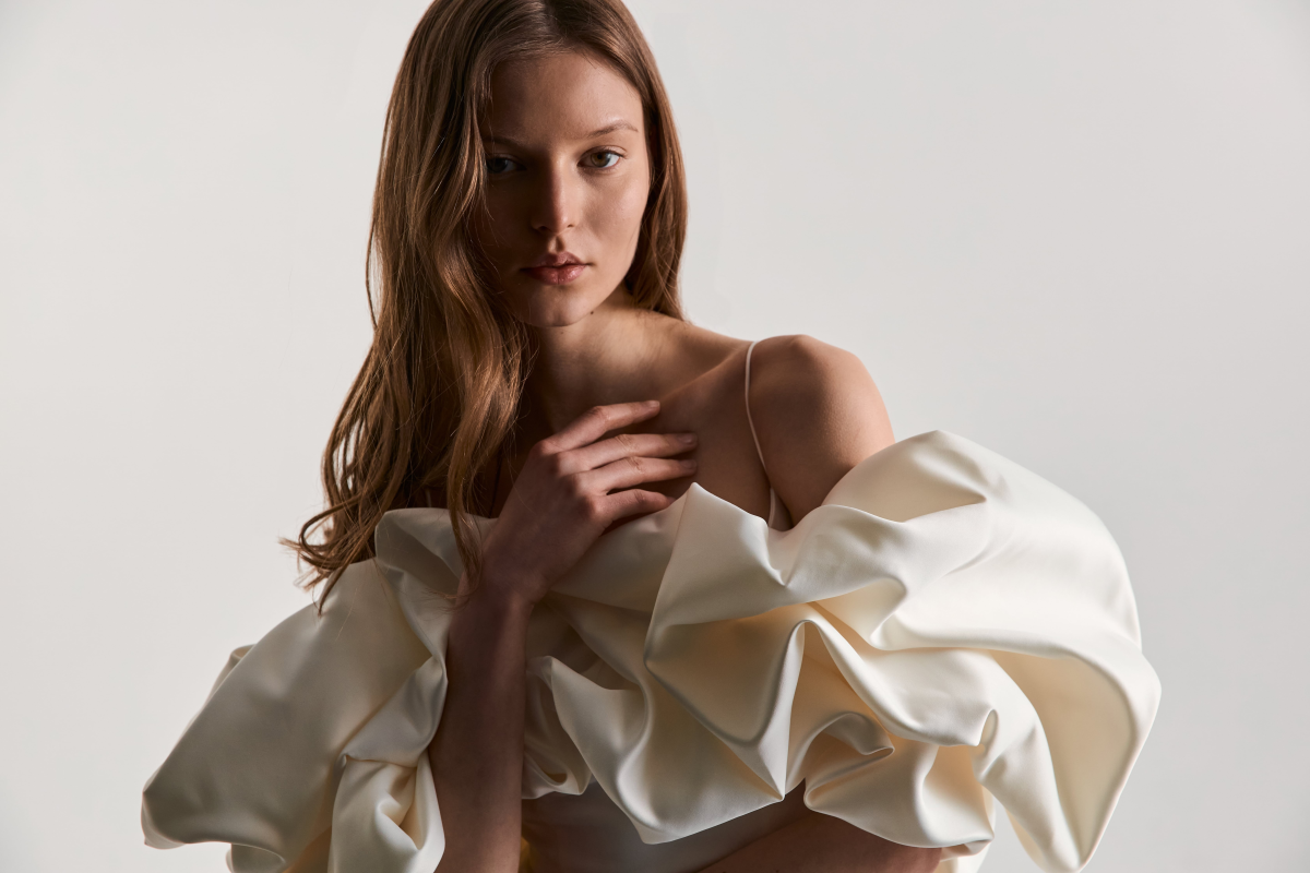 What truly distinguishes Monetre from other bridal designers is its emphasis on architectural detail. Each dress features intricate structural pleats, geometric necklines, and carefully crafted folds that elevate the minimalist aesthetic to something deeper and more artistic. The combination of these architectural elements creates a striking balance between simplicity and complexity, ensuring that each gown feels both modern and timeless.