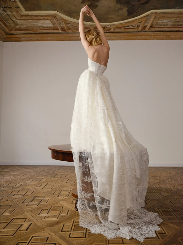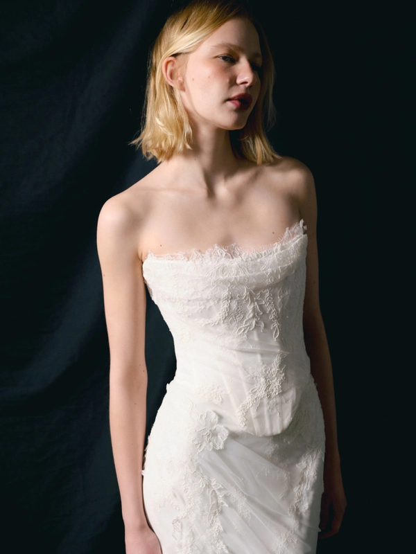 Monetre’s commitment to customization is another cornerstone of the brand. Every dress is tailored to the bride's exact measurements, ensuring a perfect fit that enhances the natural beauty of the wearer. This blend of minimalist design, architectural precision, and bespoke tailoring positions Monetre as the ideal choice for brides seeking a distinctive, unforgettable wedding dress.