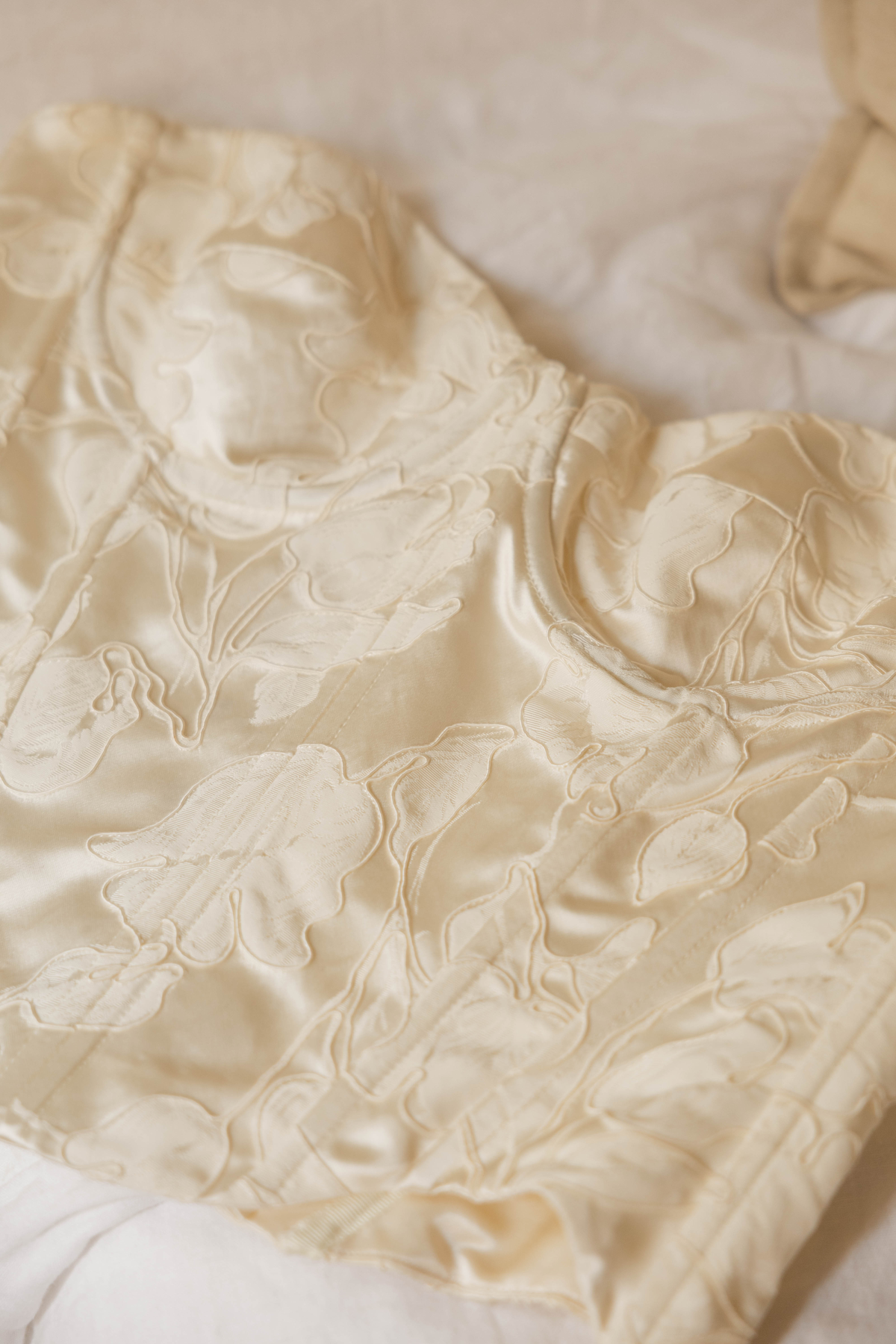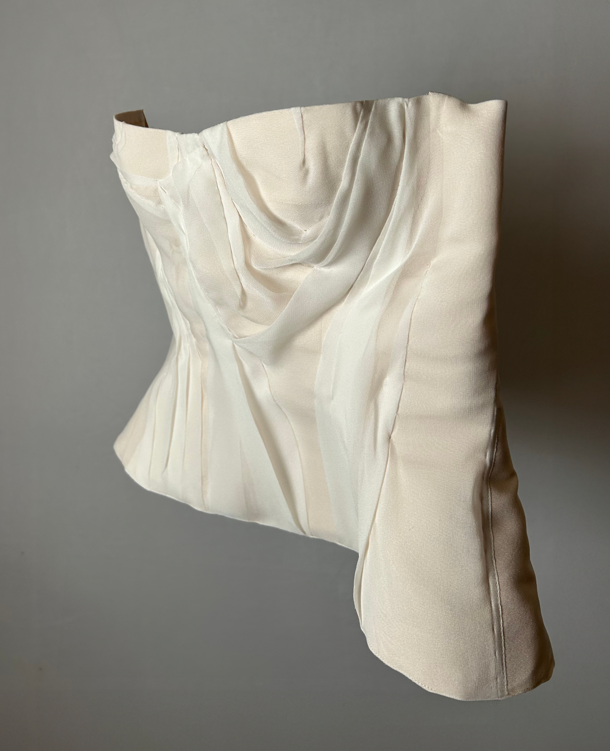 Rooted in the heritage of Parisian couture, Noa Fineout brings years of experience from esteemed ateliers to her namesake label. Her refined mastery of draping, corsetry, and construction – honed under legendary designers such as Olivier Theyskens – is evident in each piece. The result is couture that honors tradition while redefining femininity through structure, texture, and emotion.