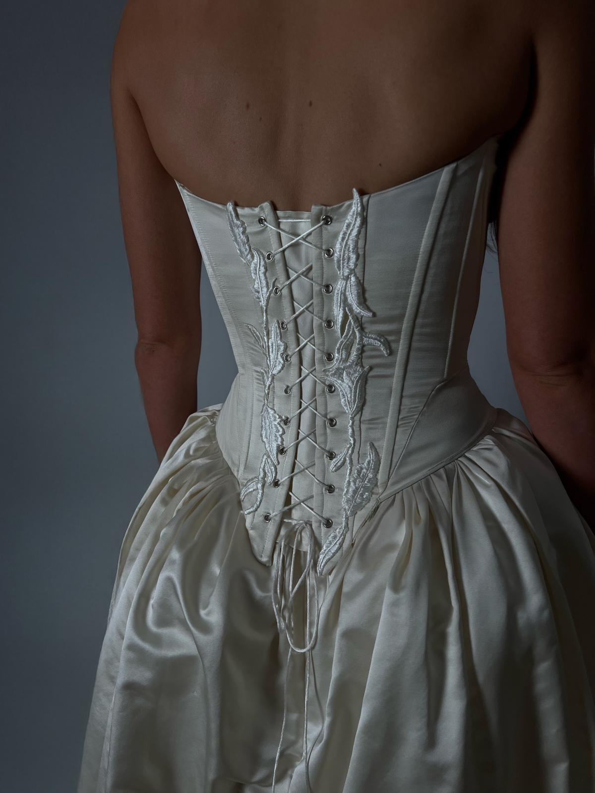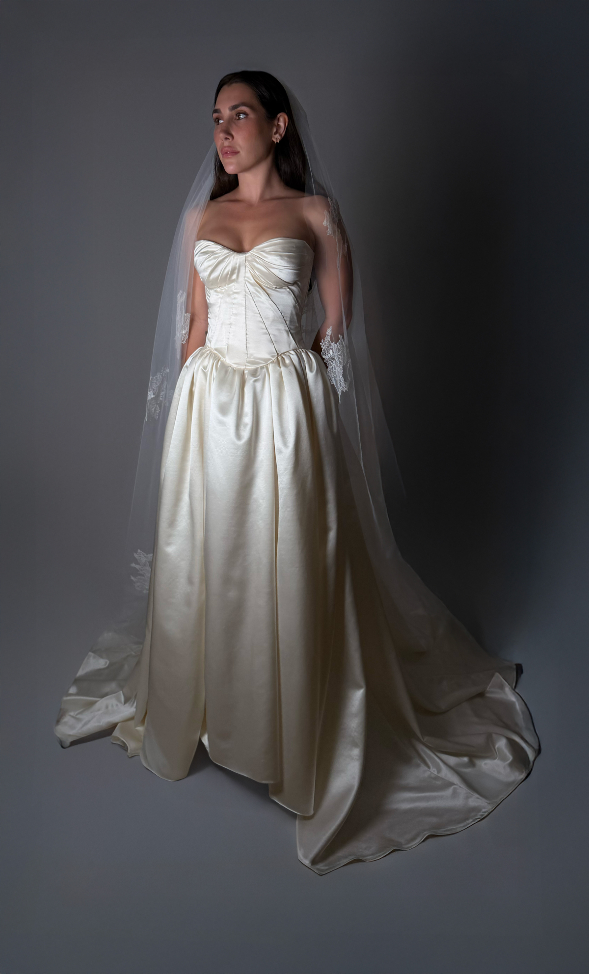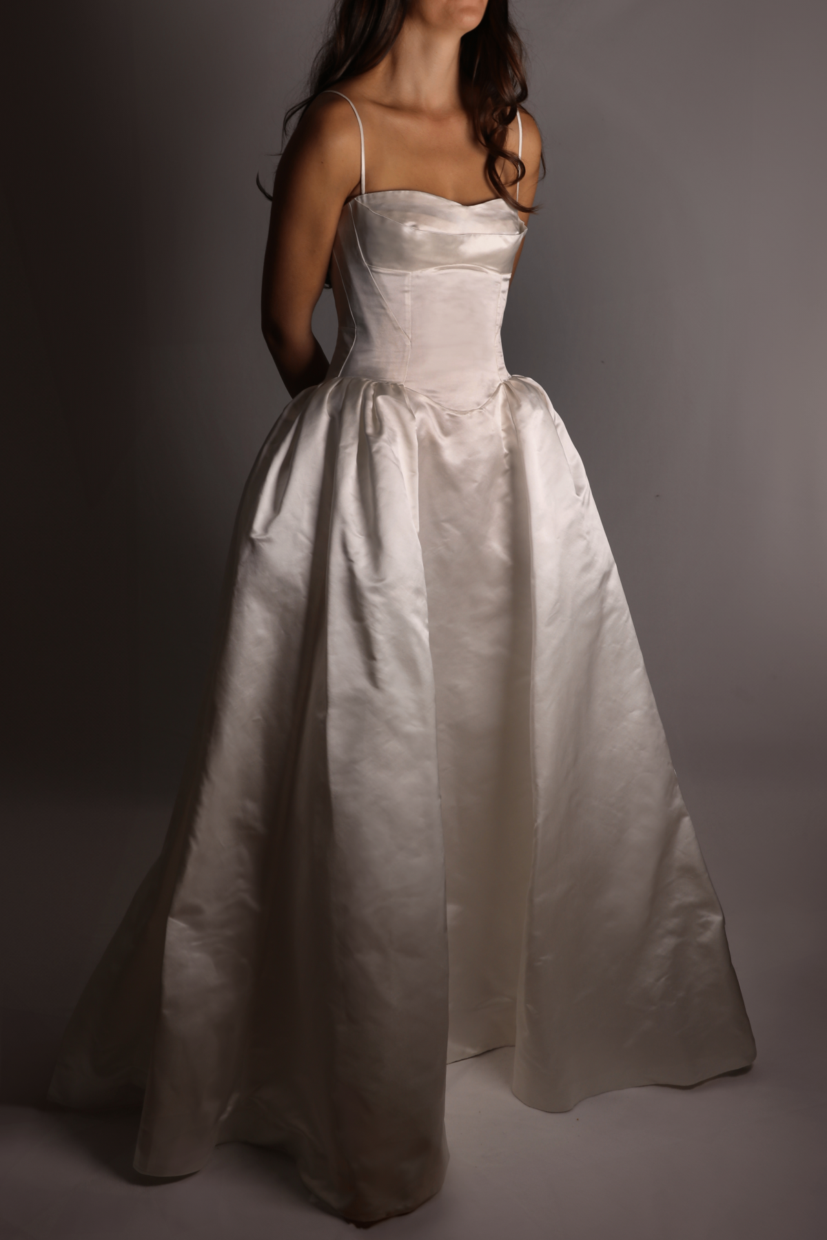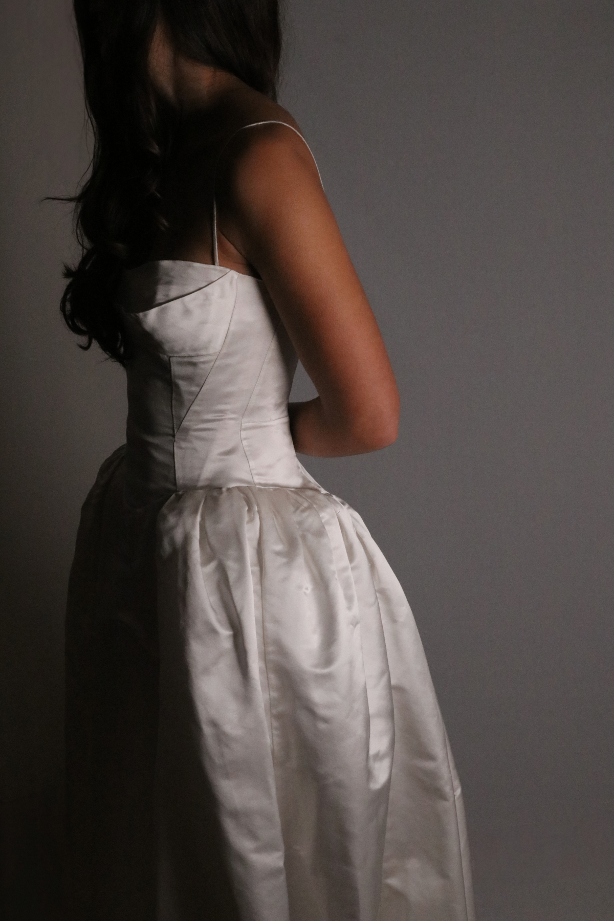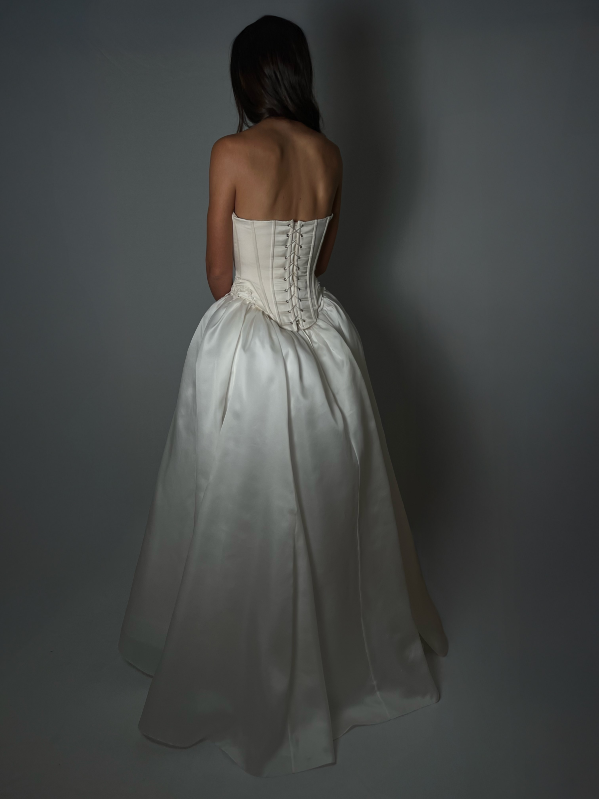 Each design is conceived for the modern romantic – one who embodies complexity, strength, and grace. She is drawn to the ethereal yet architectural, to silhouettes that whisper of nostalgia while embracing contemporary form. Every gown becomes a reflection of its wearer’s essence, meticulously realized through collaboration and a shared creative vision.