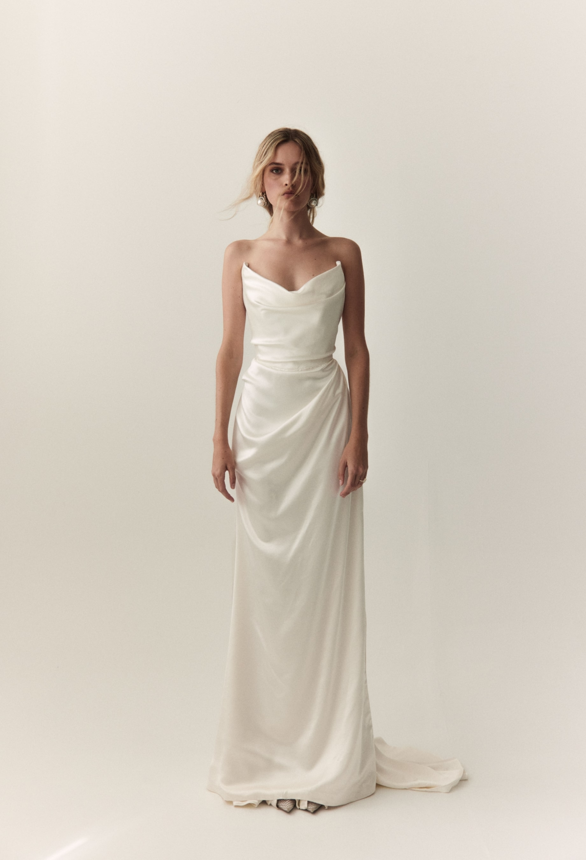 All Prea James Bridal pieces are ethically made in Sydney, Australia, where the brand is committed to nurturing craftsmanship, paying a living wage, and ensuring a healthy work-life balance for its team. Sustainability is at the core of the brand's philosophy, with a made-to-order model, local production, and a continuous effort to reduce environmental impact through mindful practices.