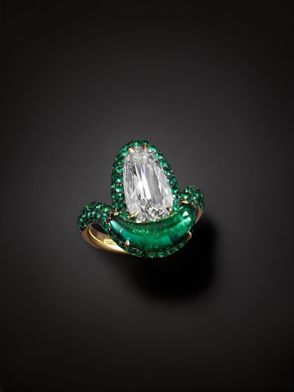 DYNE’s design philosophy revolves around the exploration of time, space, and existence, merging ancient symbols with futuristic concepts. The jewelry embraces abstraction in place of naturalism, mixing both extremely rare and non-precious materials to push the boundaries of fine jewelry. Each piece serves as a critique of permanence and value, capturing the essence of today’s cultural and technological zeitgeist.