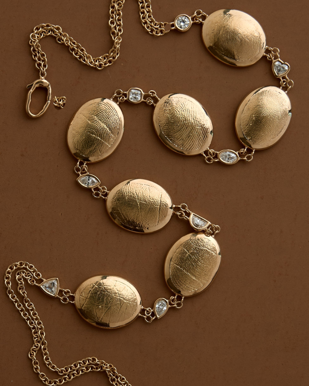 Through collections like The Imprint, which hand-casts each fingerprint with care to preserve every delicate ridge and curve, and Seer Legacy Reset, which reimagines heirlooms into new forms without losing their past, the house approaches jewelry as both remembrance and renewal. Their Bespoke Engagement Rings are equally personal – each one beginning with a story and shaped into a ring that is deeply individual, timeless, and entirely one's own.