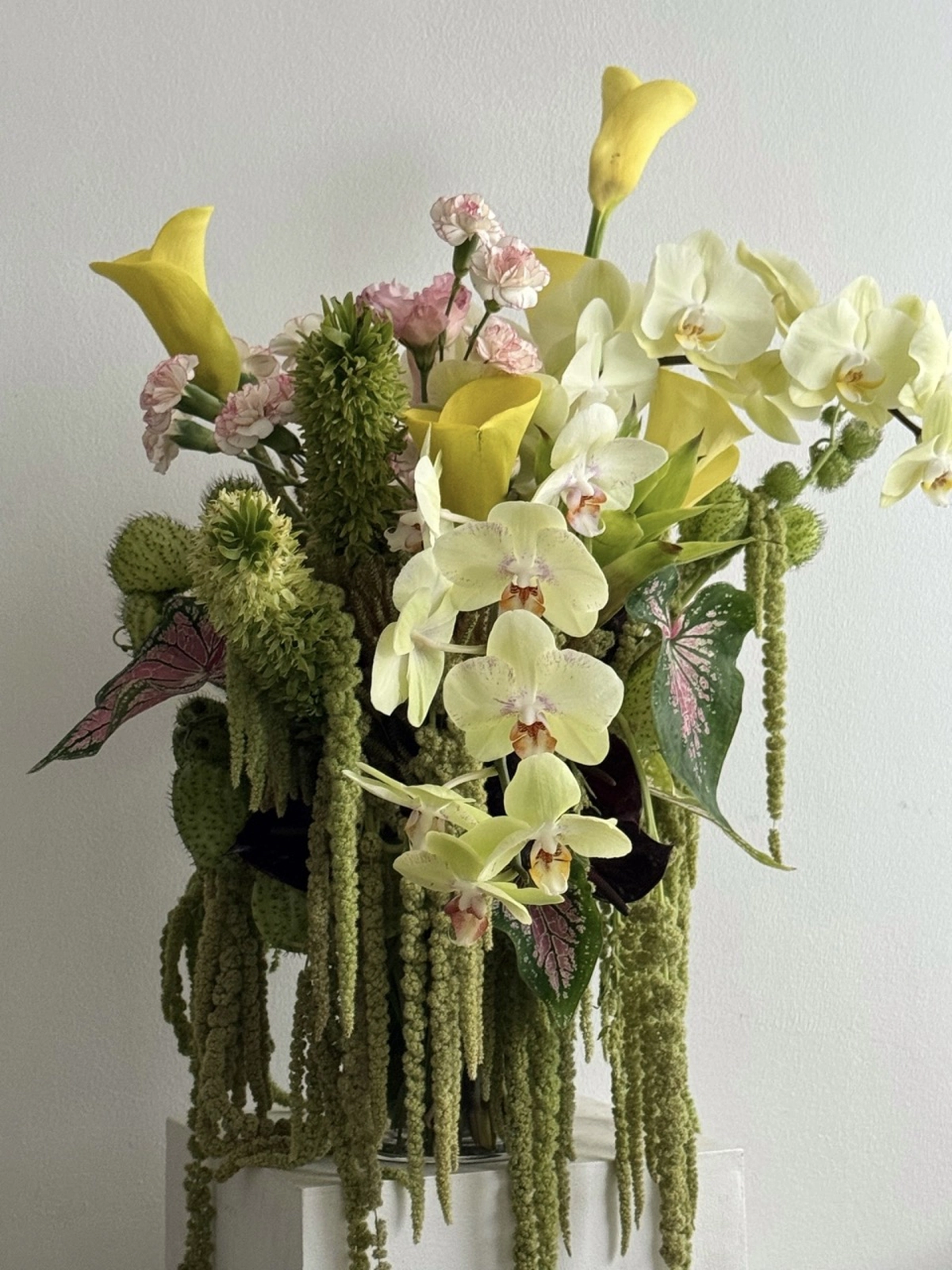 Rooted in the Philippines, his practice frequently draws from local and regional botanicals valued for both their form and cultural familiarity. These are combined with other blooms to introduce subtle shifts in scale, texture, and tone - resulting in work that feels grounded yet contemporary.