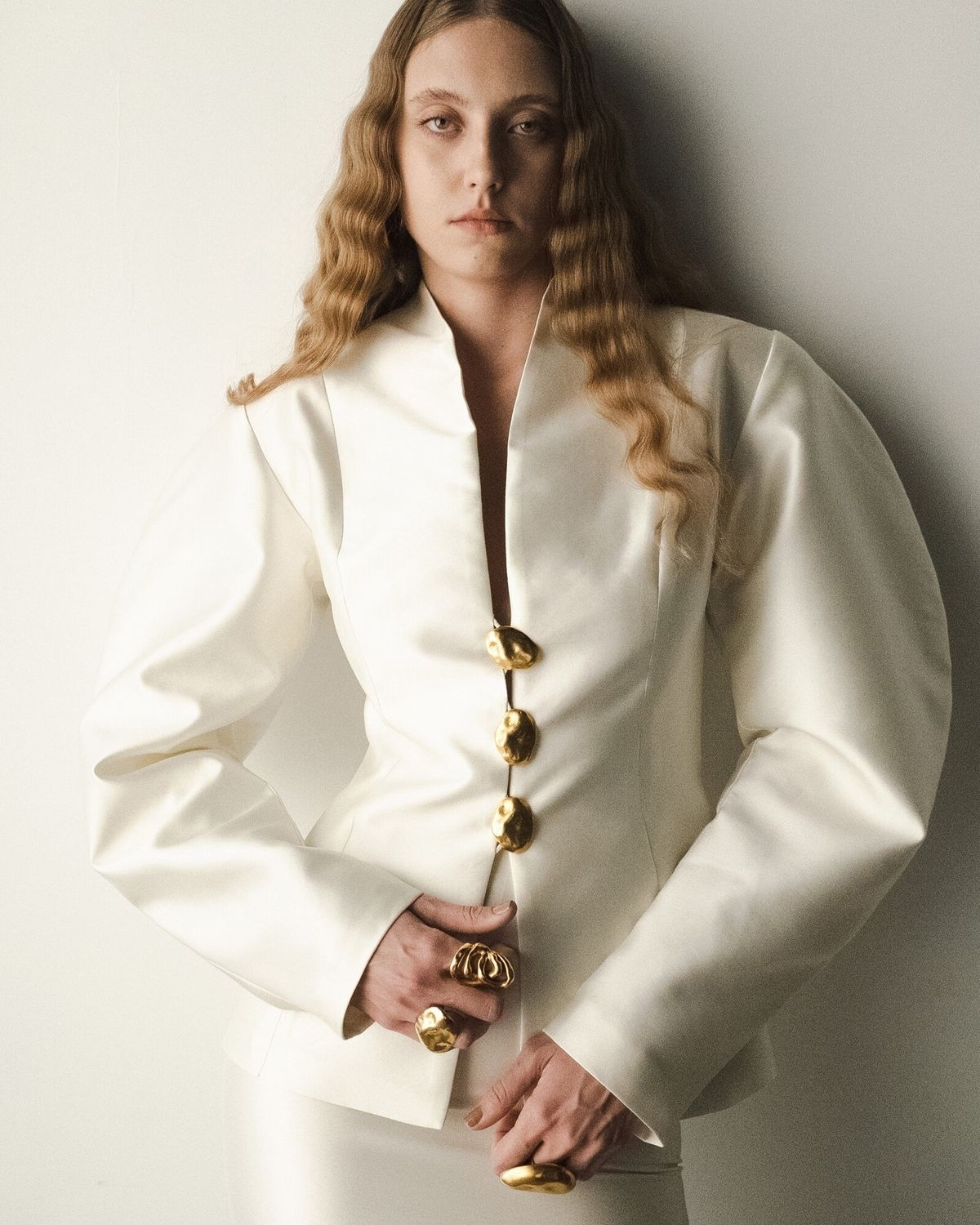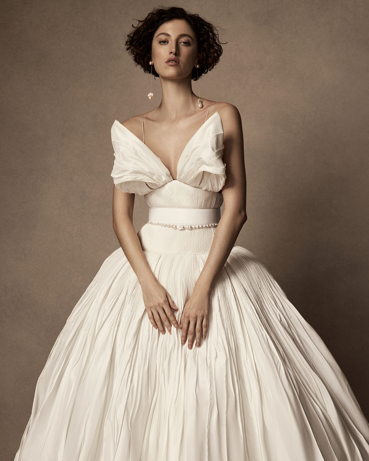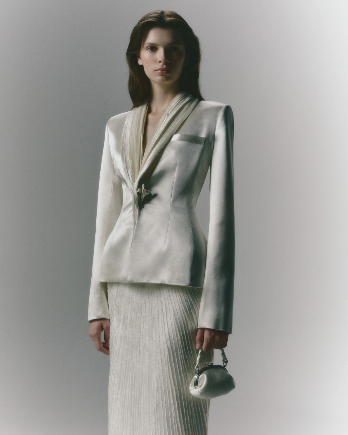 For the bride that exudes cool and modern, with an edge, a sharply tailored jacket brings structure and sophistication to any gown. Drape it over your shoulders for portraits or wear it buttoned for a bold walk down the aisle. Later, remove it to reveal the softness of your dress—or do the reverse and layer it on for the reception as the sun sets and the air cools. Either way, it creates a striking contrast between the romantic softness of your gown and the sharp, masculine edge of tailoring.
