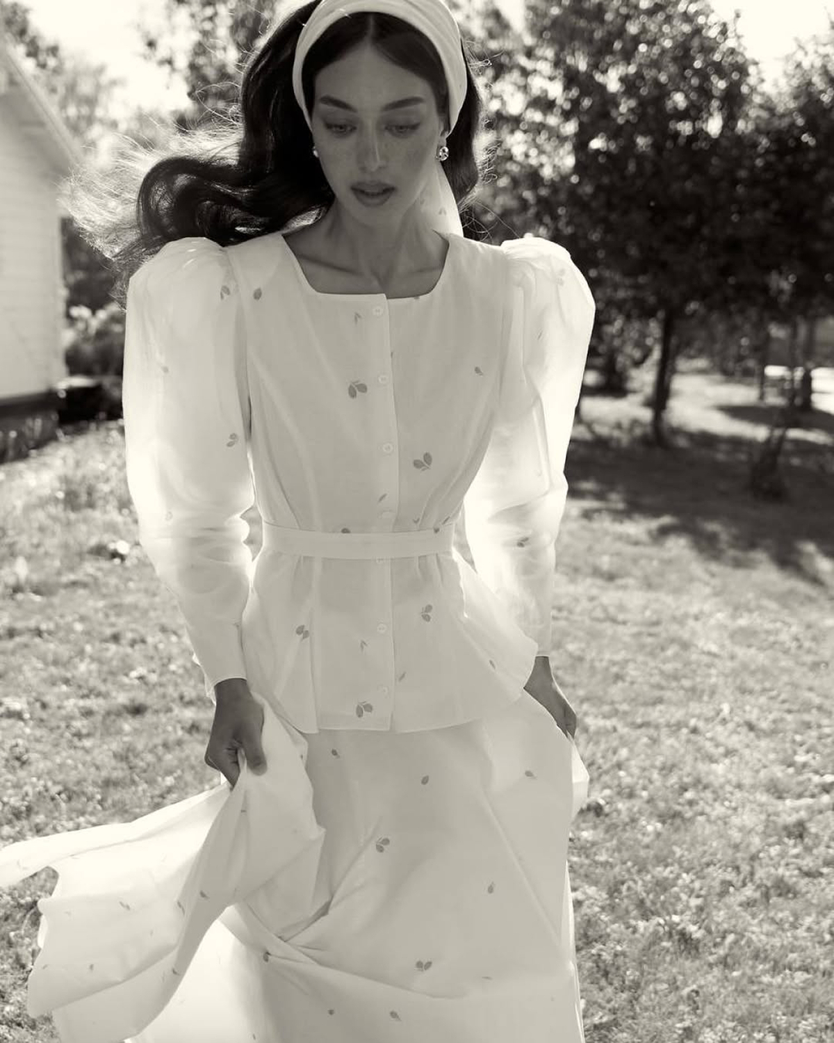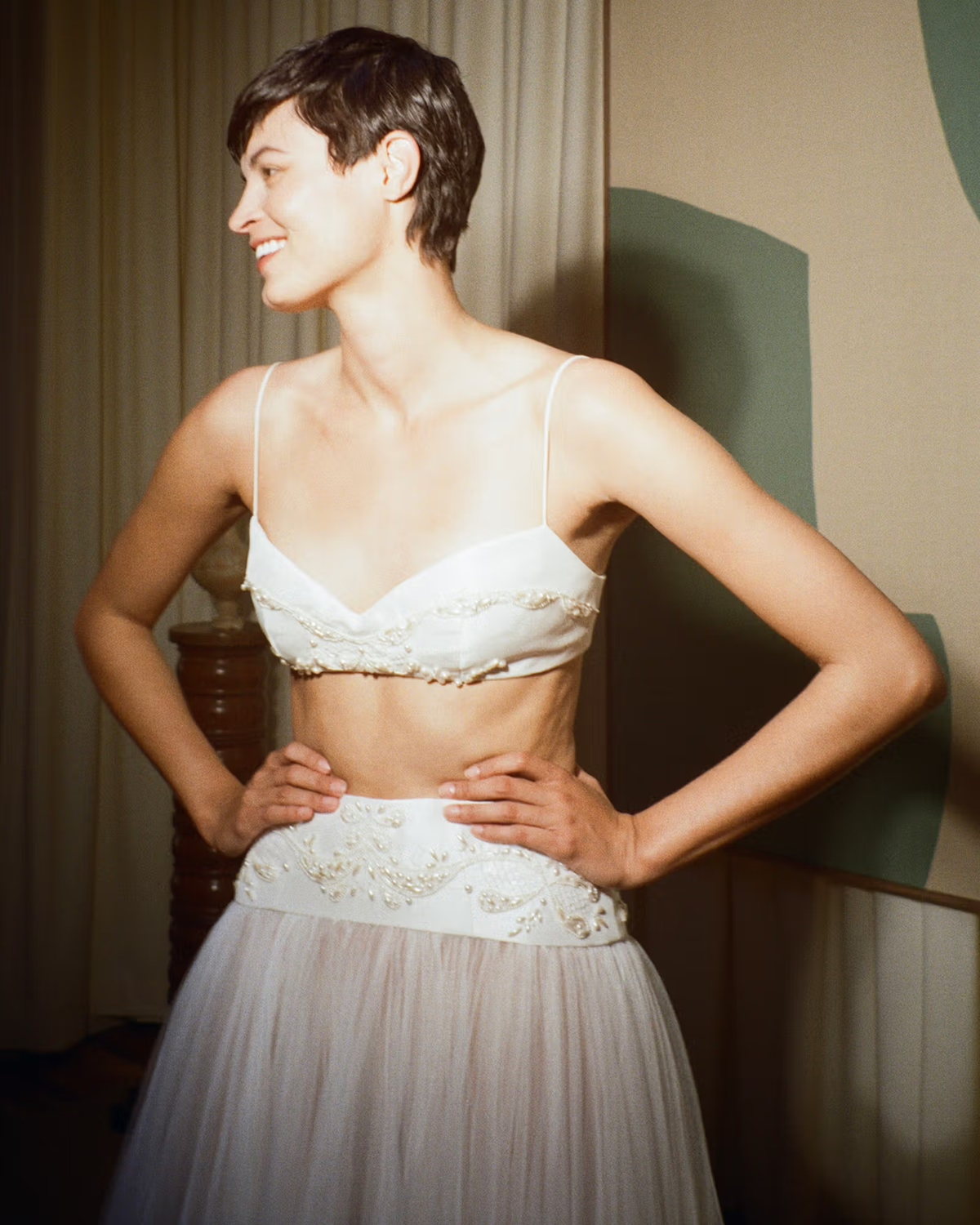 If you're wearing a multi-piece outfit, you have the freedom to completely shift your silhouette without changing your entire look. Swap a romantic blouse or long-sleeved topper for a sleek corset, minimalist bandeau, or even something with a bit of sparkle for the reception. You’ll keep the same base—like a skirt or tailored pants—but reveal an entirely new energy. It’s ideal for the bride who wants versatility and a wow moment without committing to two dresses.