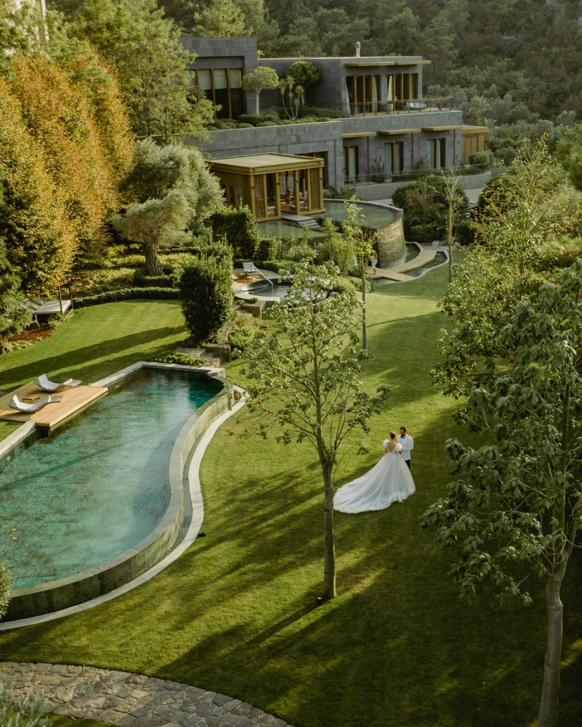Nestled on the secluded shores of Günlüklü Bay near Göcek, Ahãma Living seamlessly blends bohemian-luxury with the tranquil rhythms of the Turkish Riviera. The resort sets the stage for a wedding weekend that unfolds like a gentle journey: imagine a vow exchange beneath towering liquidambar trees, a reception on a wooden deck by the turquoise sea, and dawn-to-dusk moments of ease in cabanas designed with minimal Japanese influences and soft natural textures. With 30 cabanas, 29 guest houses and a private villa nestled among forest and sea, Ahãma offers a boutique, deeply intimate setting for couples seeking a full-weekend celebration steeped in serenity, connection and nature. Whether guests paddleboard at sunrise, lounge by the forest pool or gather for a farm-to-table feast as live vinyl spins into the night, Ahãma transforms a wedding into an immersive escape where every detail feels intentional and every moment becomes part of the story.
