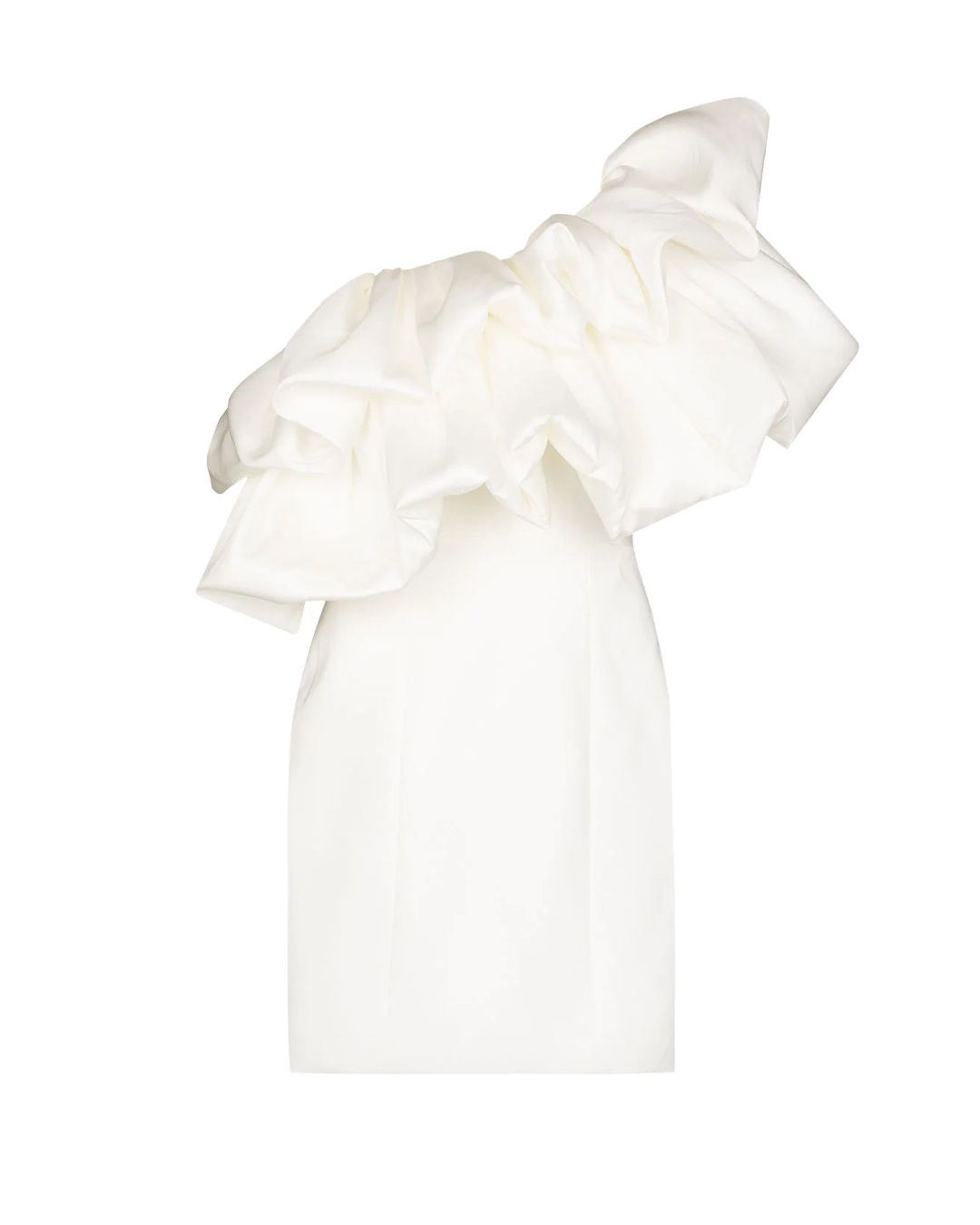 Solace London Finley Ruffled One-Shoulder Mini Dress, $490