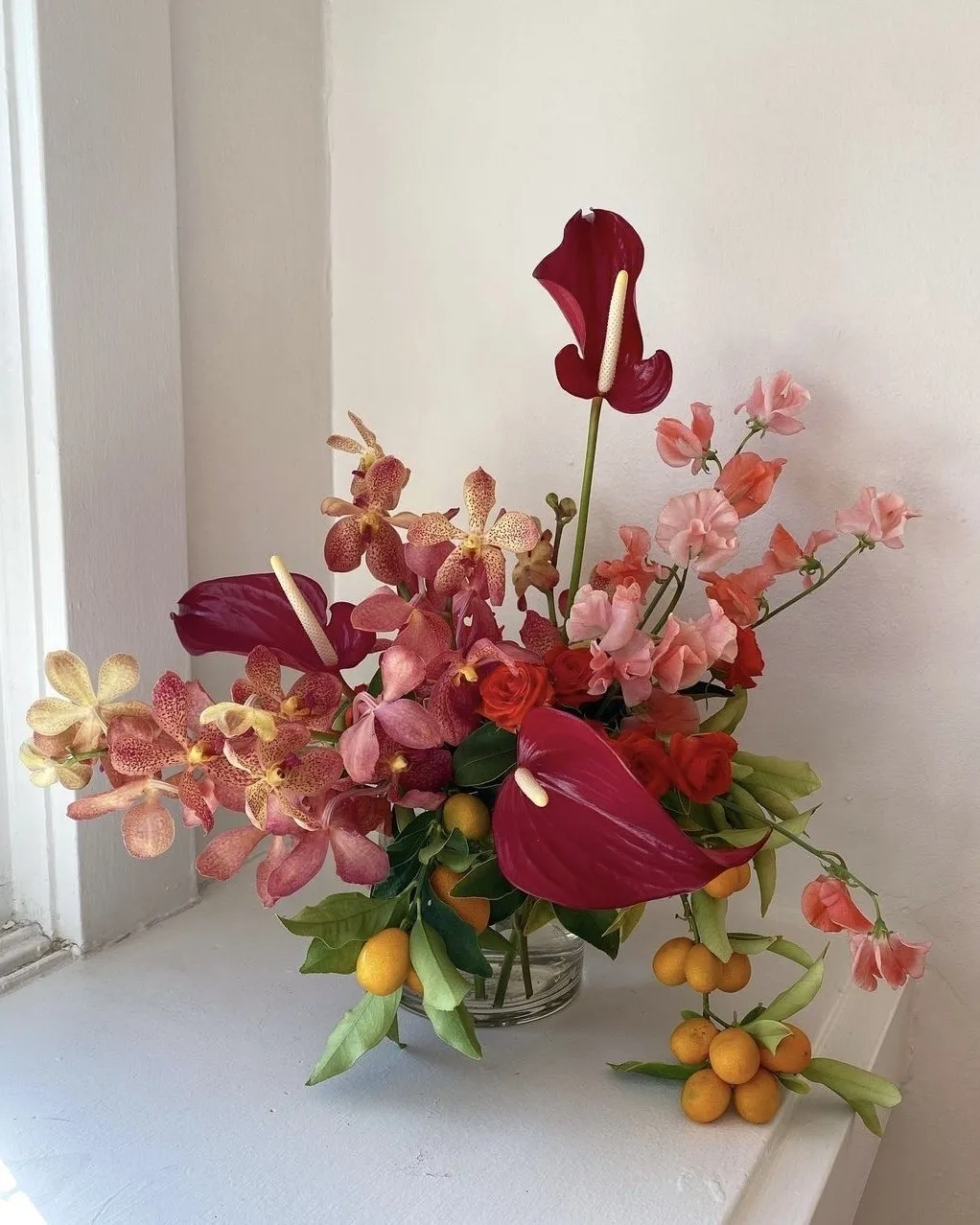 Jenn Sanchez is a painter. She learned to convey emotions through colors and textures from an early age. In 2014, her talent for painting was revealed in the flower business. As a California coast resident, she has the privilege of finding sources from many unexpected places to carry out her projects: from farm fruits to canary grass growing in a forgotten field. And of course, all works of the florist are unique and created individually for each client.