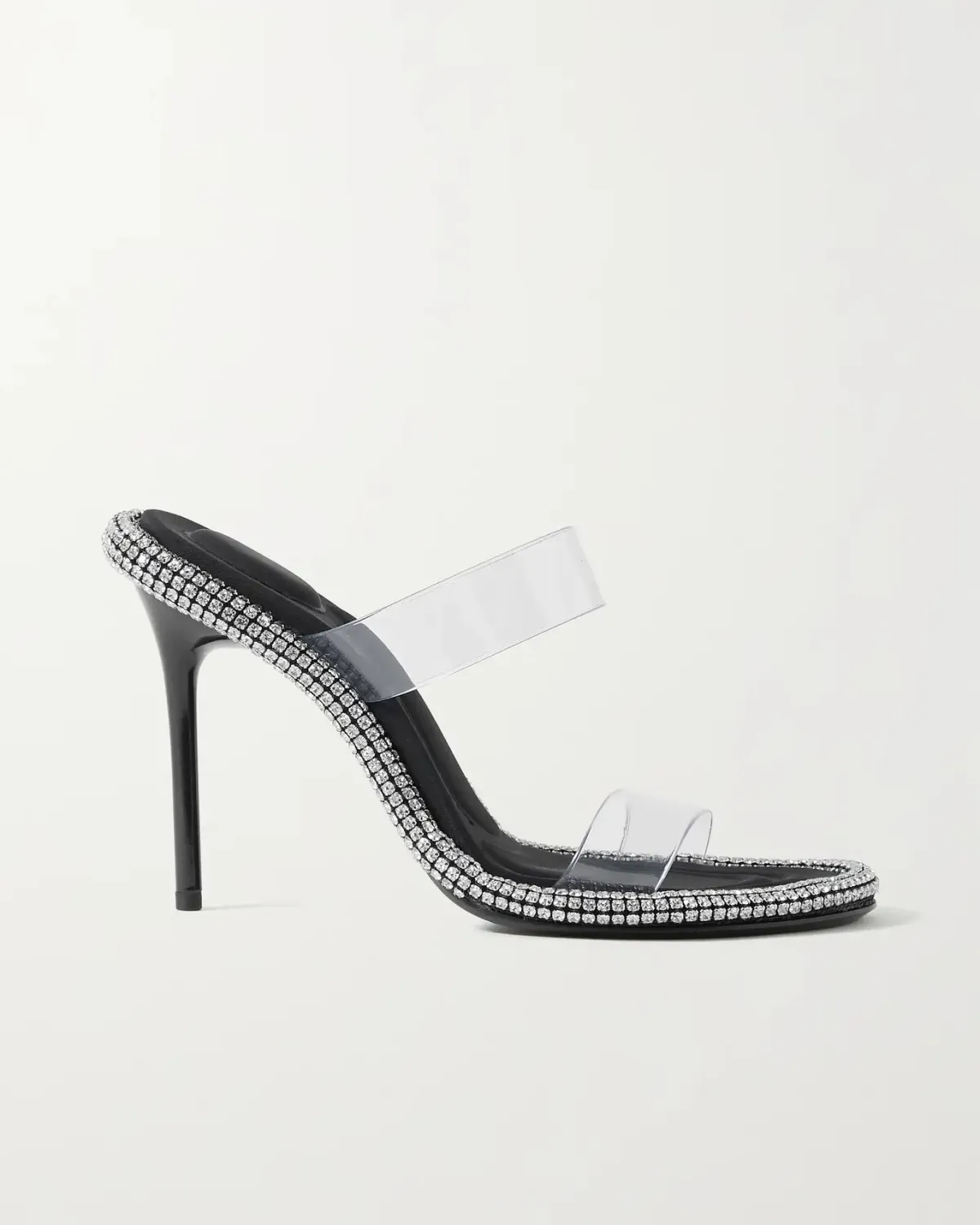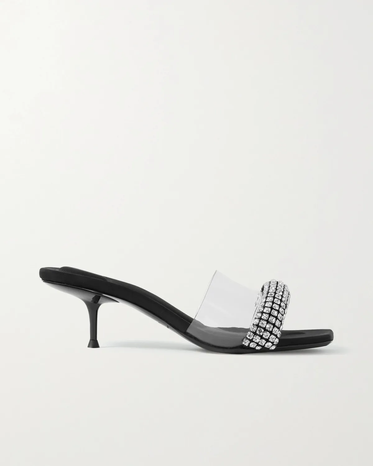 ALEXANDER WANG Jessie crystal-embellished PVC and leather mules, $650