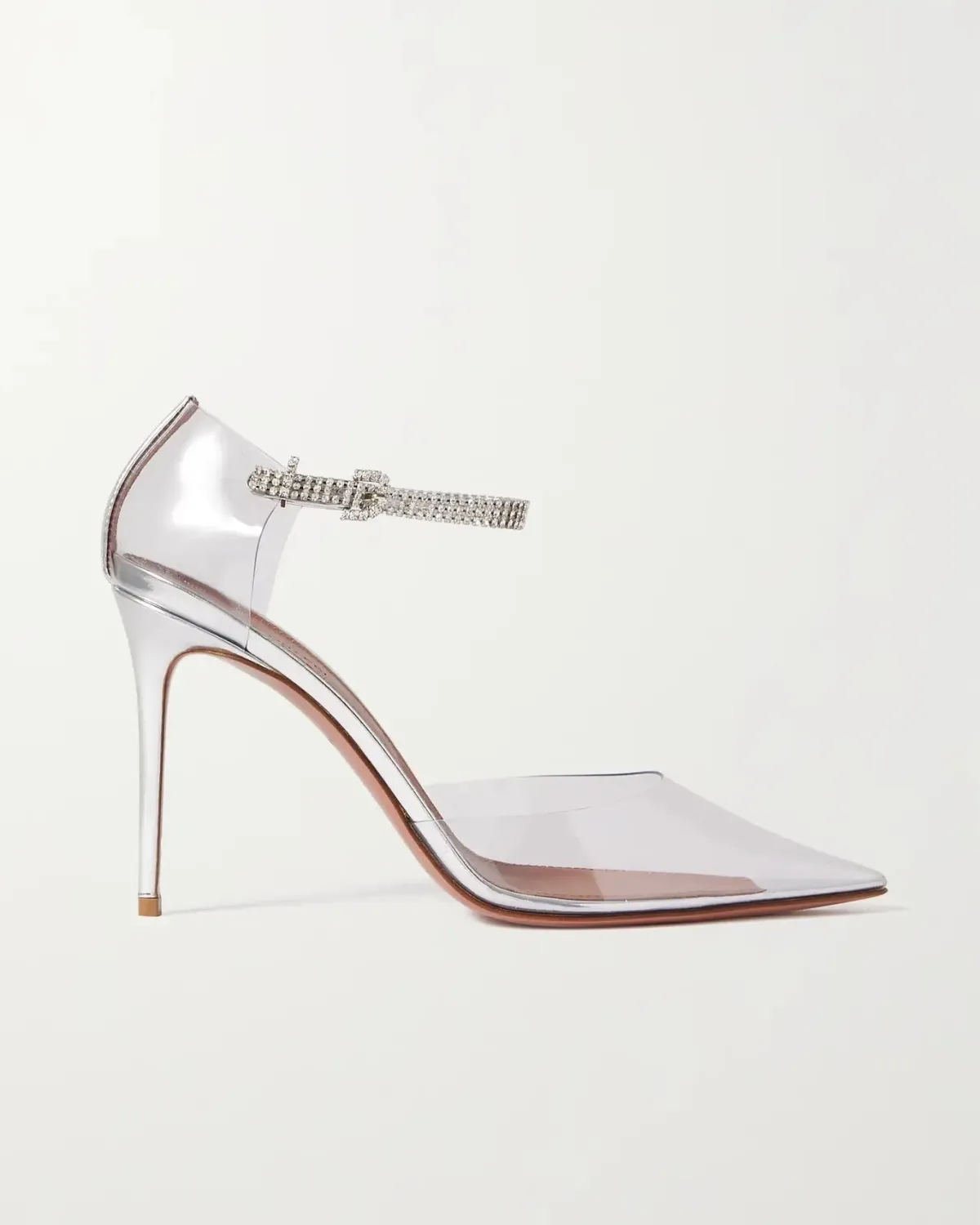 AMINA MUADDI Ursina crystal-embellished PVC and metallic leather pumps, $1 140