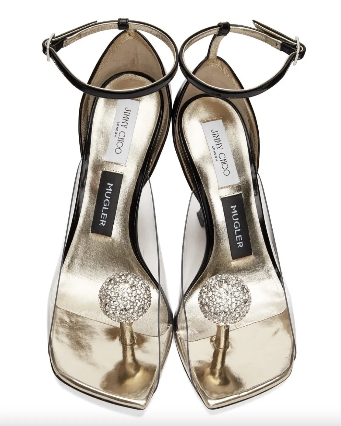 JIMMY CHOO Black Mugler Edition Plexi Heeled Sandals, $1 950