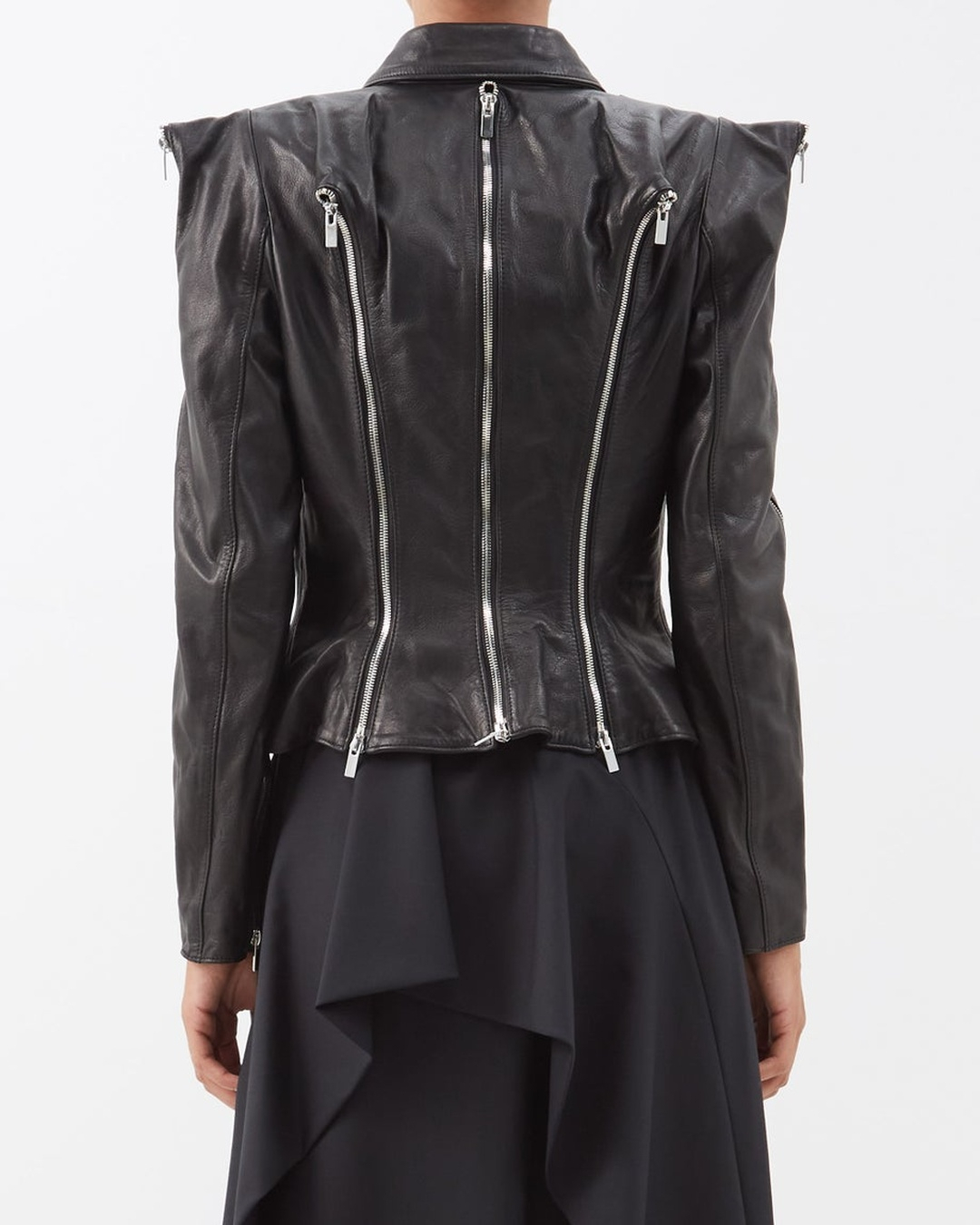 Noir Kei Ninomiya Zip-Embellished Leather Biker Jacket, $2,355