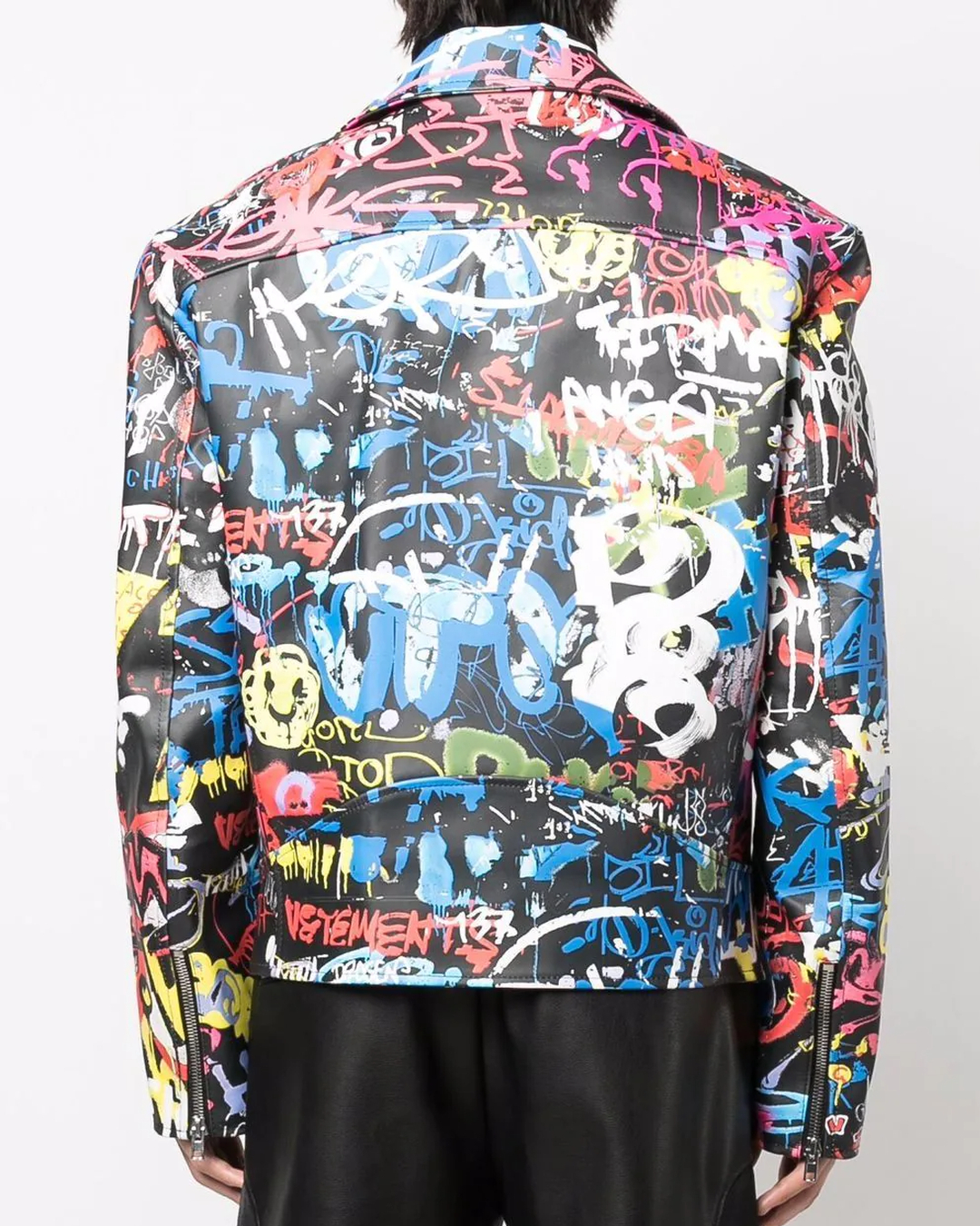 Vetements Graffiti-Print Leather Biker Jacket, $2,565