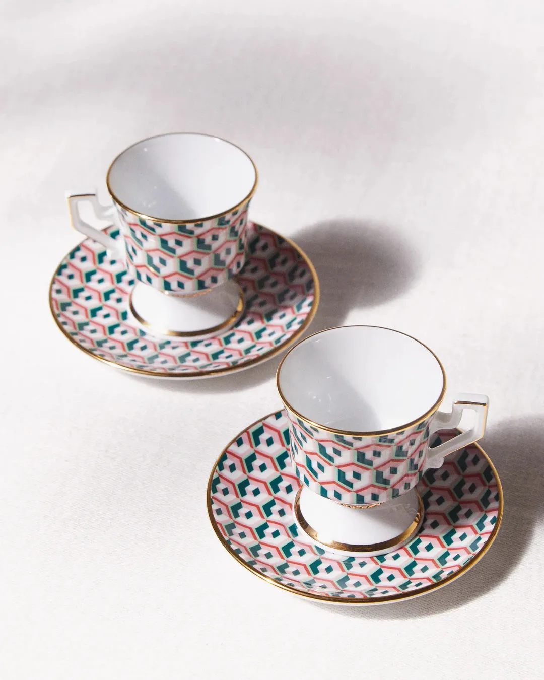 La Doublej Set of Two Cubi-Print Porcelain Espresso Cups, $170