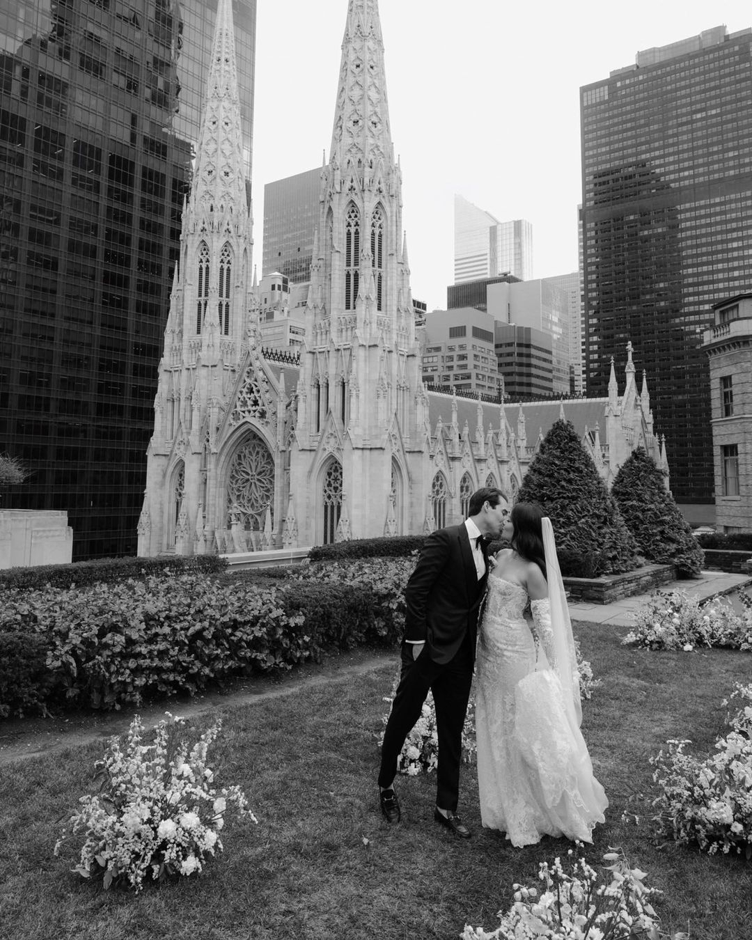 Nestled above the iconic Fifth Avenue, 620 Loft & Garden offers an enchanting setting for weddings, marked by its classic New York style and history. The venue's loft is beautifully illuminated by natural light from expansive windows and provides sweeping views of St. Patrick’s Cathedral. The outdoor garden, with its meticulously maintained greenery, reflective pool, and elegant fountain, sets a magical ambiance, making every event unforgettable.