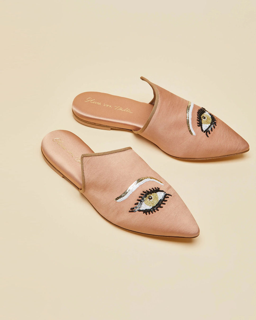 Olivia von Halle Contessa Ophanim Silk Slippers, $990
