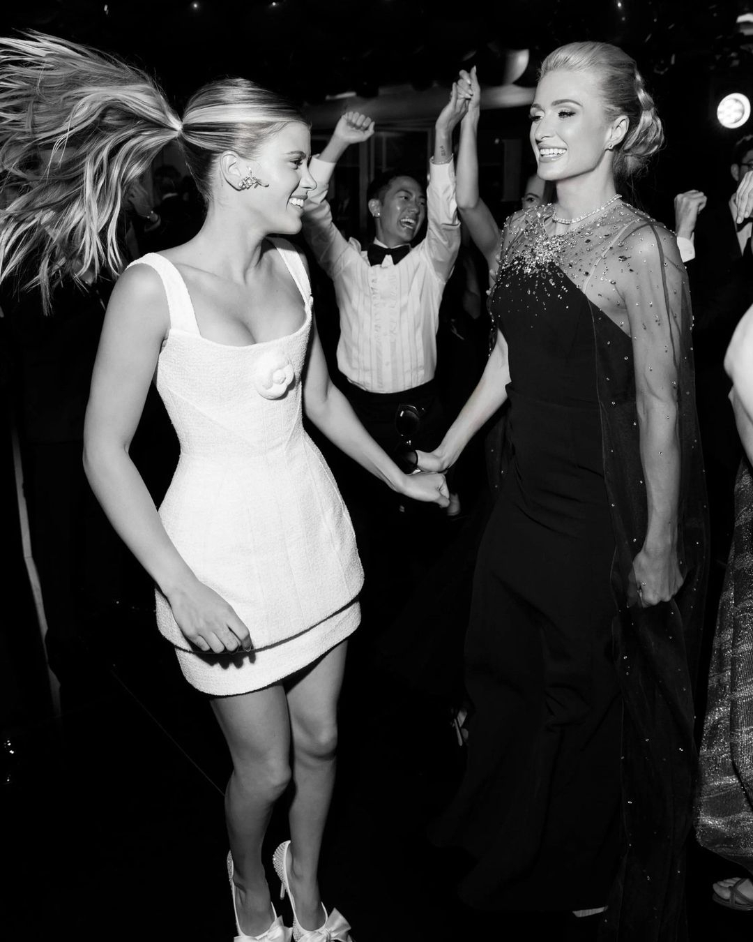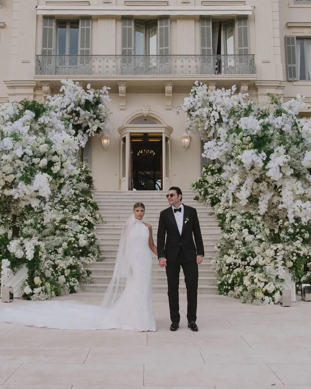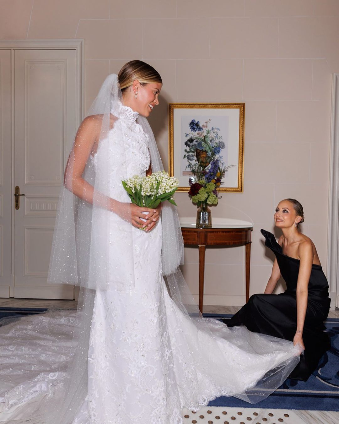 Sofia looked radiant in a custom Chanel wedding dress with an embellished train adorned with white and iridescent beads. Her sister, Nicole Richie, who was also in attendance, shared an intimate picture on Instagram of herself crouching down in her stunning black gown to straighten the bride's long train.