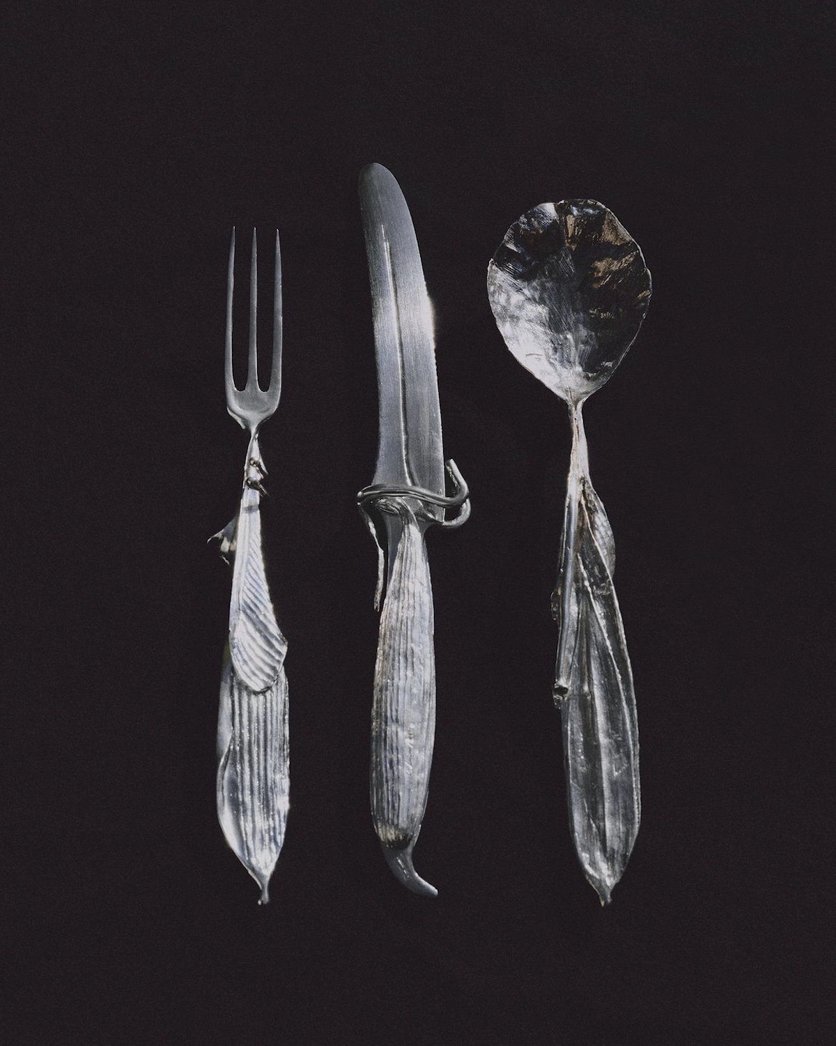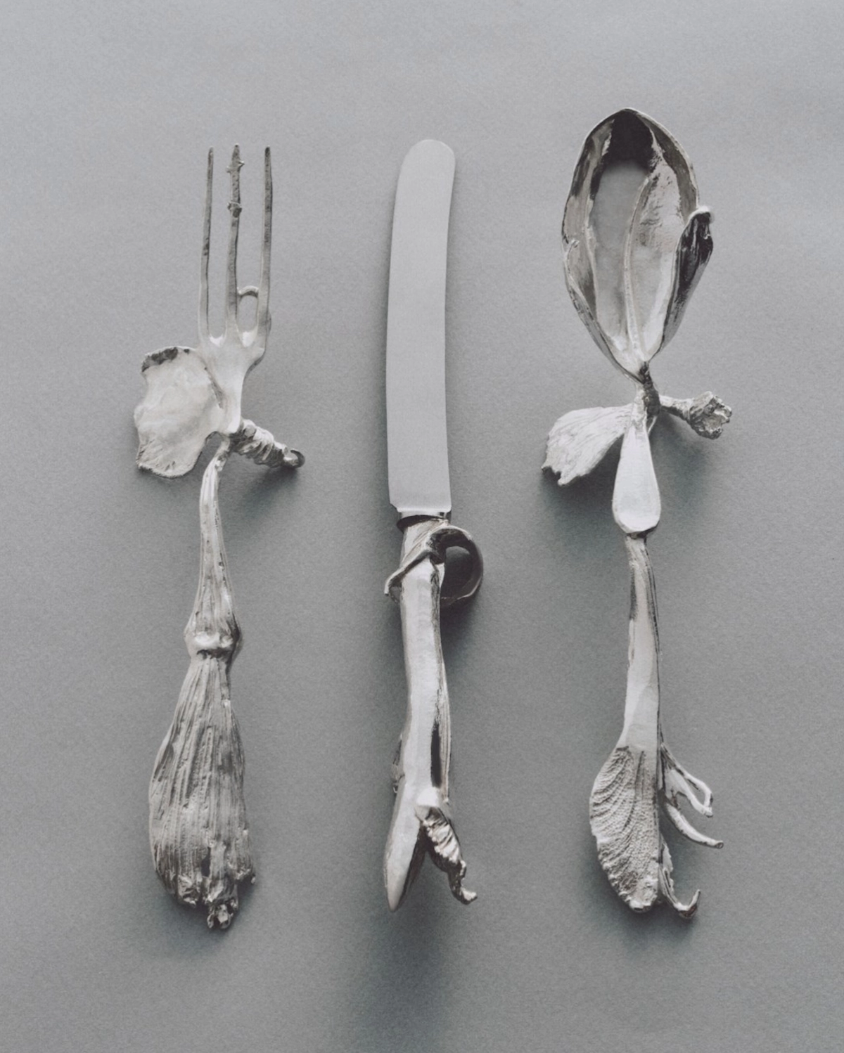 Feed your soul with indelible curios of flatware; a delicate touch of craftsmanship for the most special of occasions. Whimsical and abstract silverware entwined, melded and forged into sculptural tools, serving equal parts form and function, adorning place settings scattered across tablescapes with touches of antique silver and gilded tones that ignite the night. Whether opting for a full cutlery suite or select serve ware, forgo the mass-manufactured hired cutlery for handmade, artisanal flatware that revels in delight and enriches the dining experience. Think antique-inspired treasures of classical forms with a curious twist for an opulent effect, or abstract Bauhaus inspired sets for a more contemporary approach. For a truly unique touch, collaborate with local artisans for custom cutlery that can serve as a special keepsake for you and your guests. Whatever your style, allow the flatware to be the guest of honor by placing front and centre within each setting. Food for thought.