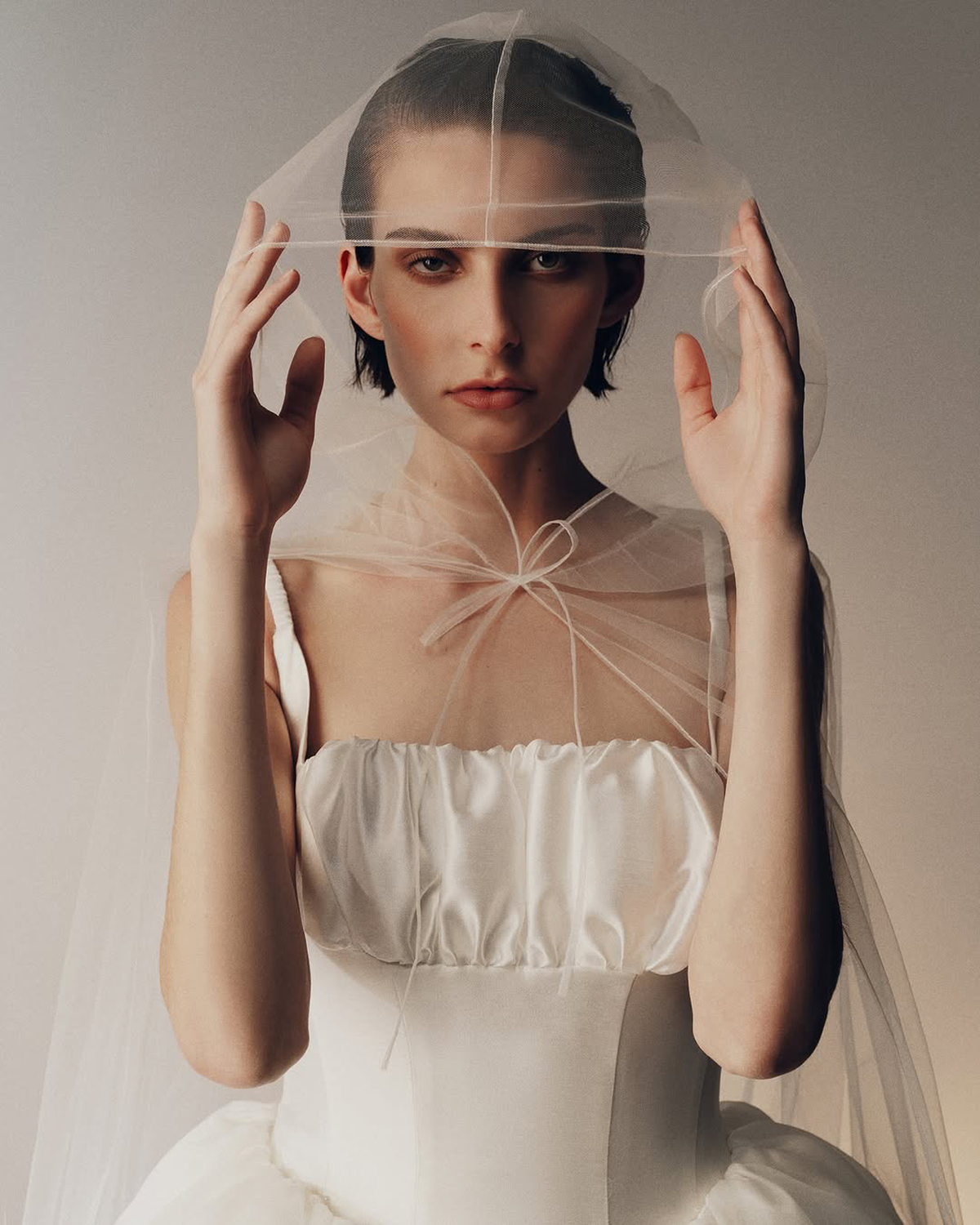 A classic silhouette made modern, the Juliette veil is experiencing a renaissance. Crafted in rich lace and crochet textures or minimalist fabrics, this style creates a soft halo effect around the bride. Strike a balance between a romantic and runway-ready look with this vintage-inspired veil.