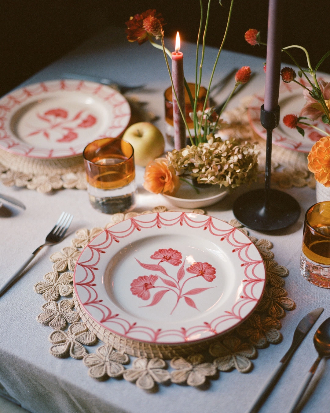 Unfolding at the Clifton Inn, this editorial shoot was inspired by festive fireside parties, the shifting seasons, and also by Sophia Coppola's iconic film "Marie Antoinette." The team behind the project sought to capture the essence of a warm, opulent, yet intimate dinner party. To evoke the late fall atmosphere, they used locally sourced dried elements and seasonal fruits, honoring Virginia's natural beauty and ecosystem. The emphasis was on a palette of rich jewel tones to play off Clifton's mid-century color scheme of blues and greens.
