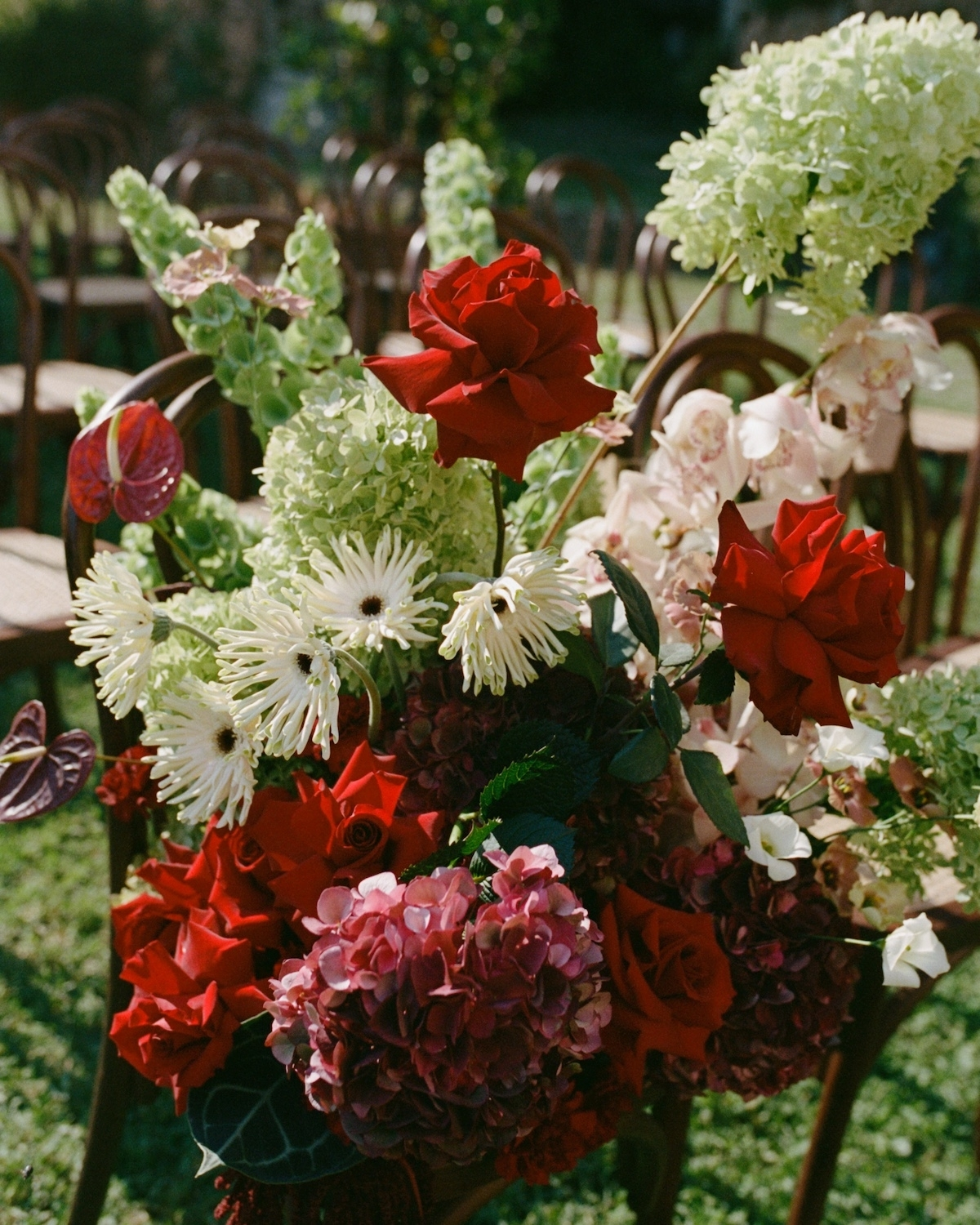 One of the most meaningful elements of our wedding was the memorial chair our florist, Maria, created in honor of April’s late mother, Jennifer. It was filled with a beautiful bouquet of flowers and placed at the front of the ceremony, then later moved to the head of the table for dinner—ensuring her presence was felt throughout the day. Another detail that made the wedding truly special was that the celebration spanned three days. Having that extra time meant our families and friends really got to know one another, creating a more open, relaxed vibe where everyone felt free to be themselves. That spirit of connection led to spontaneous moments—like the impromptu karaoke session during cocktail hour—that we’ll never forget.