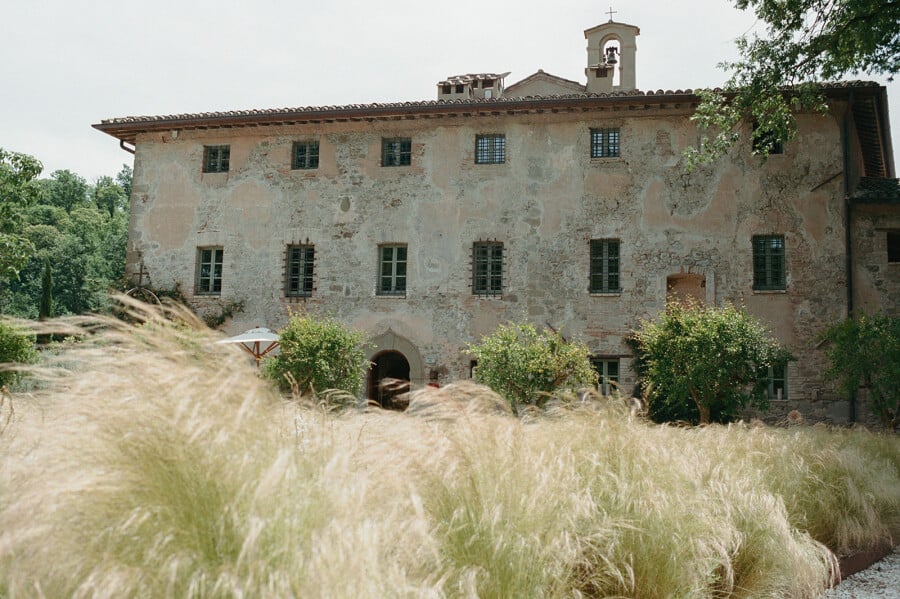 I randomly discovered Vocabolo Moscatelli on my Explore page on Instagram shortly after we got engaged. Although we had never been to Umbria prior to the wedding, we fell in love with the location—nestled in the heart of the countryside—and the design of the hotel, strictly based on photos alone! We immediately reached out to the venue to see if they hosted weddings/events, and luckily they did!