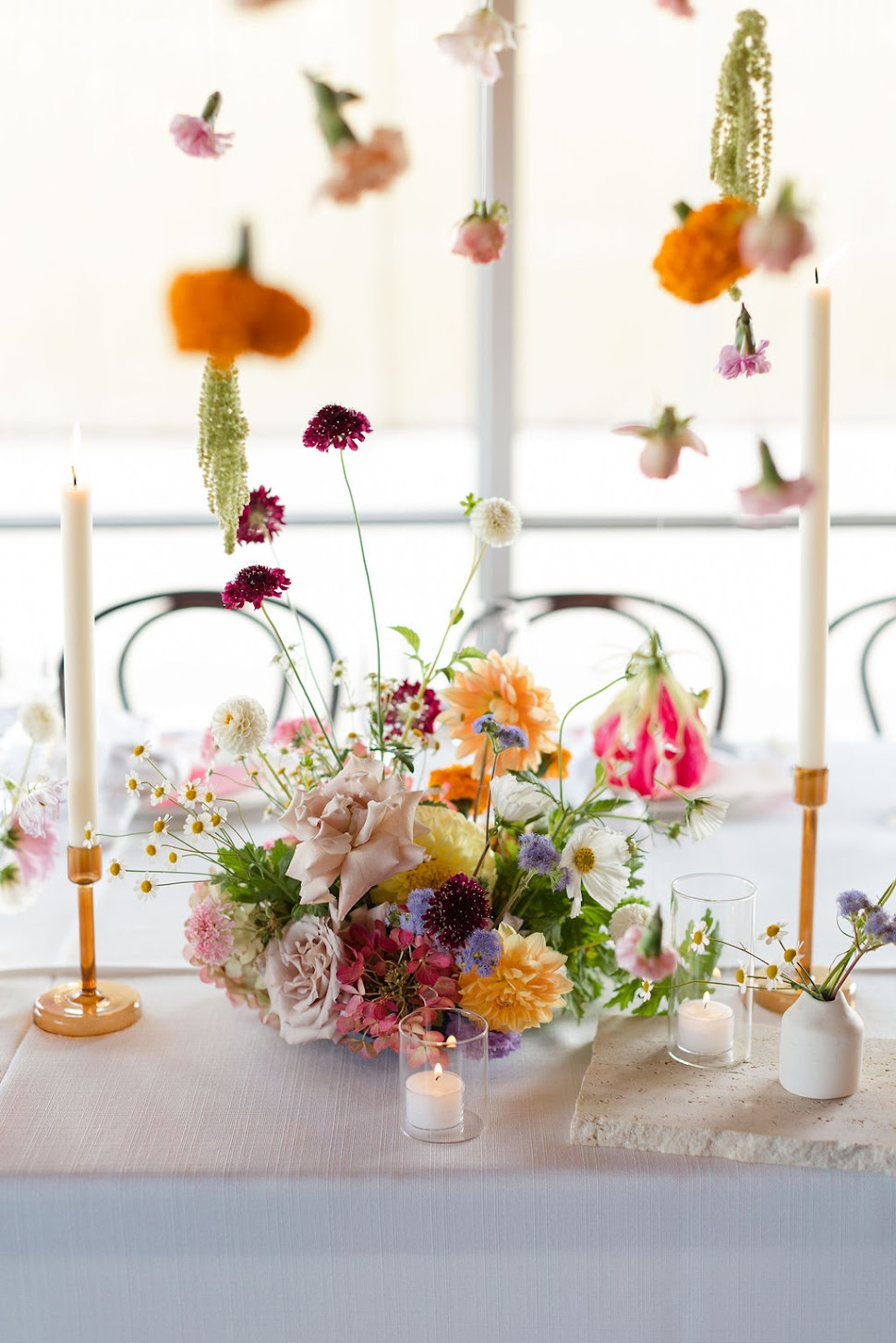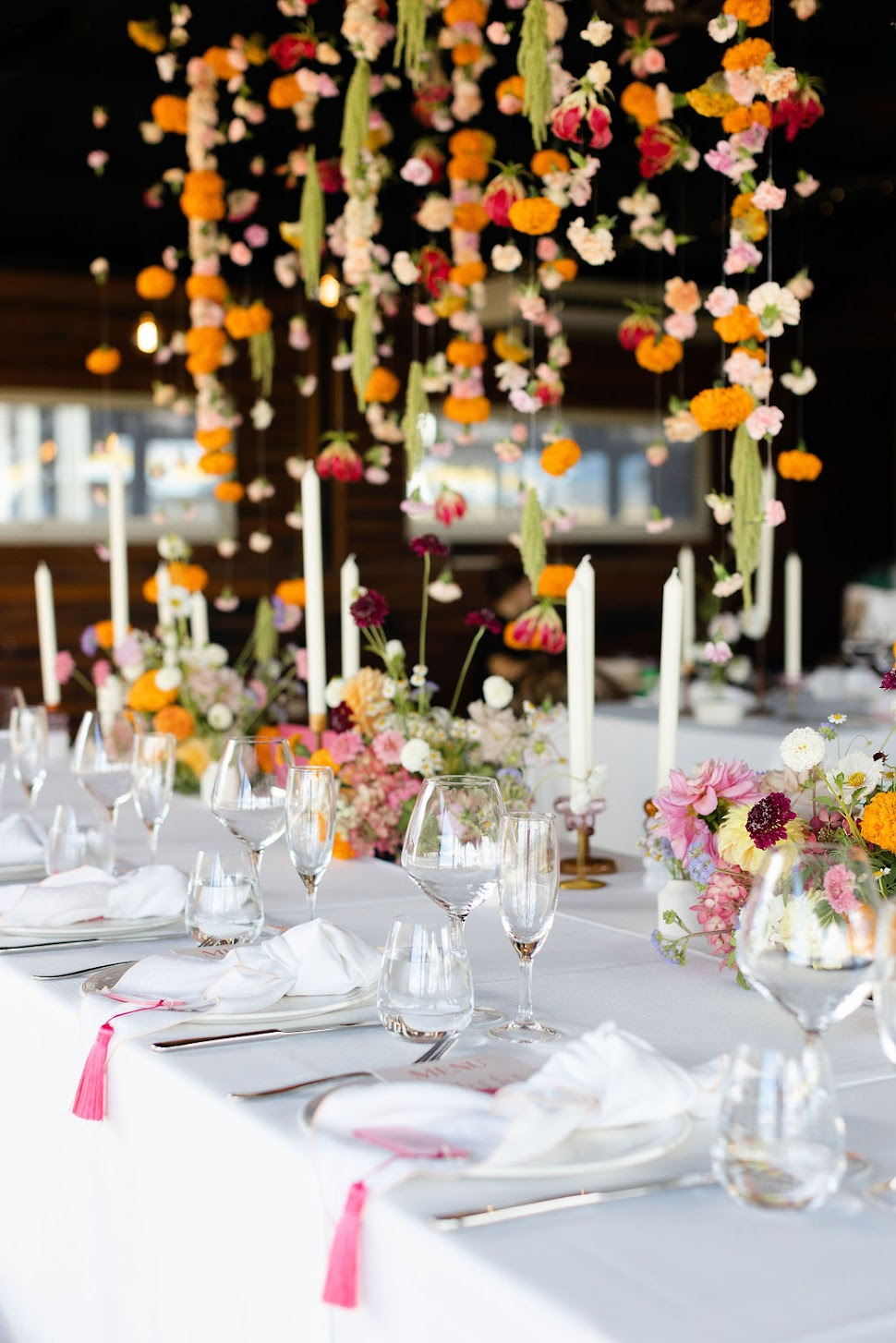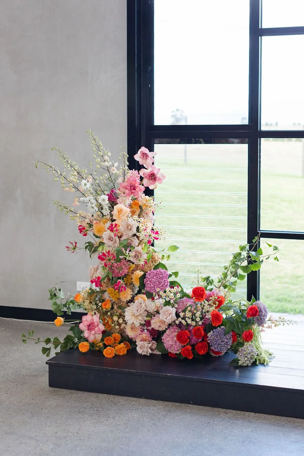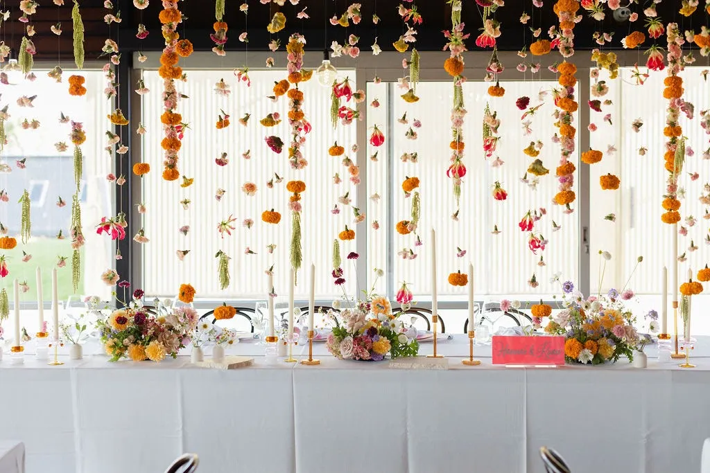 Hannah and Ryan's gorgeous summer 90's inspired wedding was an explosion of colour and featured a gorgeous floral garland installation over the bridal table. As you scroll through this photo series, be prepared to be inspired by the colors, textures, and unique floral combinations that Sassafras Weddings has masterfully curated.