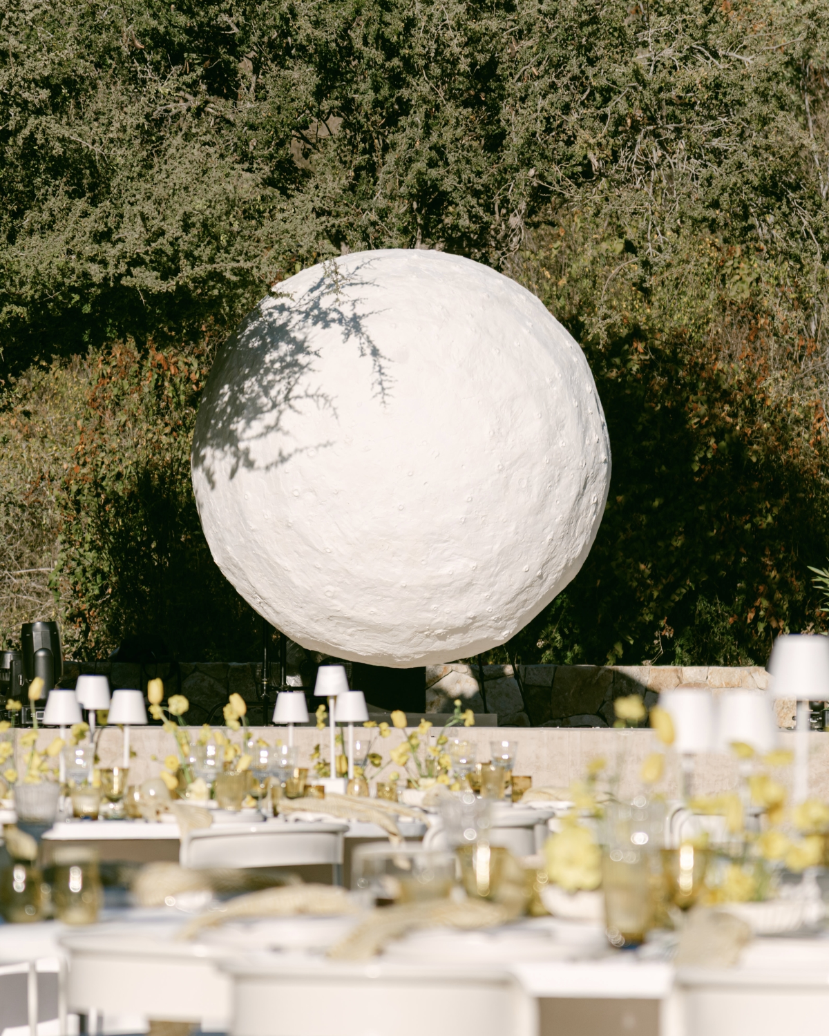 We wanted our welcome party to be a whimsical, Baja-inspired celebration. The theme revolved around circles and celestial elements — symbols of unity, eternity, and the cycles that shape our lives. March 13 is especially meaningful for us, as it’s both the birthday and passing date of our dog, Princess, so incorporating circles and the full moon felt deeply symbolic. Calvin and I have always loved full moons, and having the event fall on a total lunar blood moon eclipse — a phenomenon that only happens a handful of times in a decade — made it feel cosmically aligned.