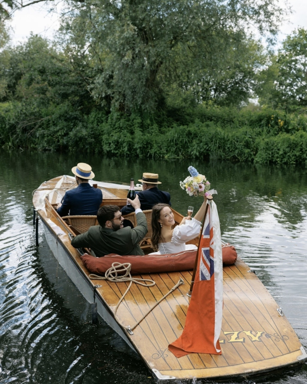 Whilst our guests were walking to the reception, we hopped in a beautiful boat and rode down the river past them all. Not only did we get to wave at our favourite people as we went past, which felt quite surreal, but all the other boats on the bank started honking us too. The sun was shining and we had a moment to ourselves to soak it all in. We also had some really special moments with our parents – my mum walking me down the aisle, and James’ dad joining him for a dance-off to Get Low by Lil John.