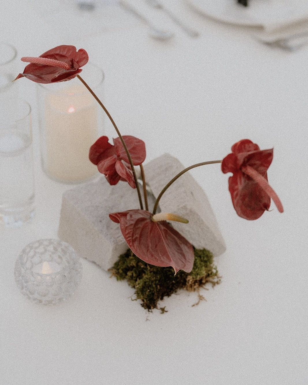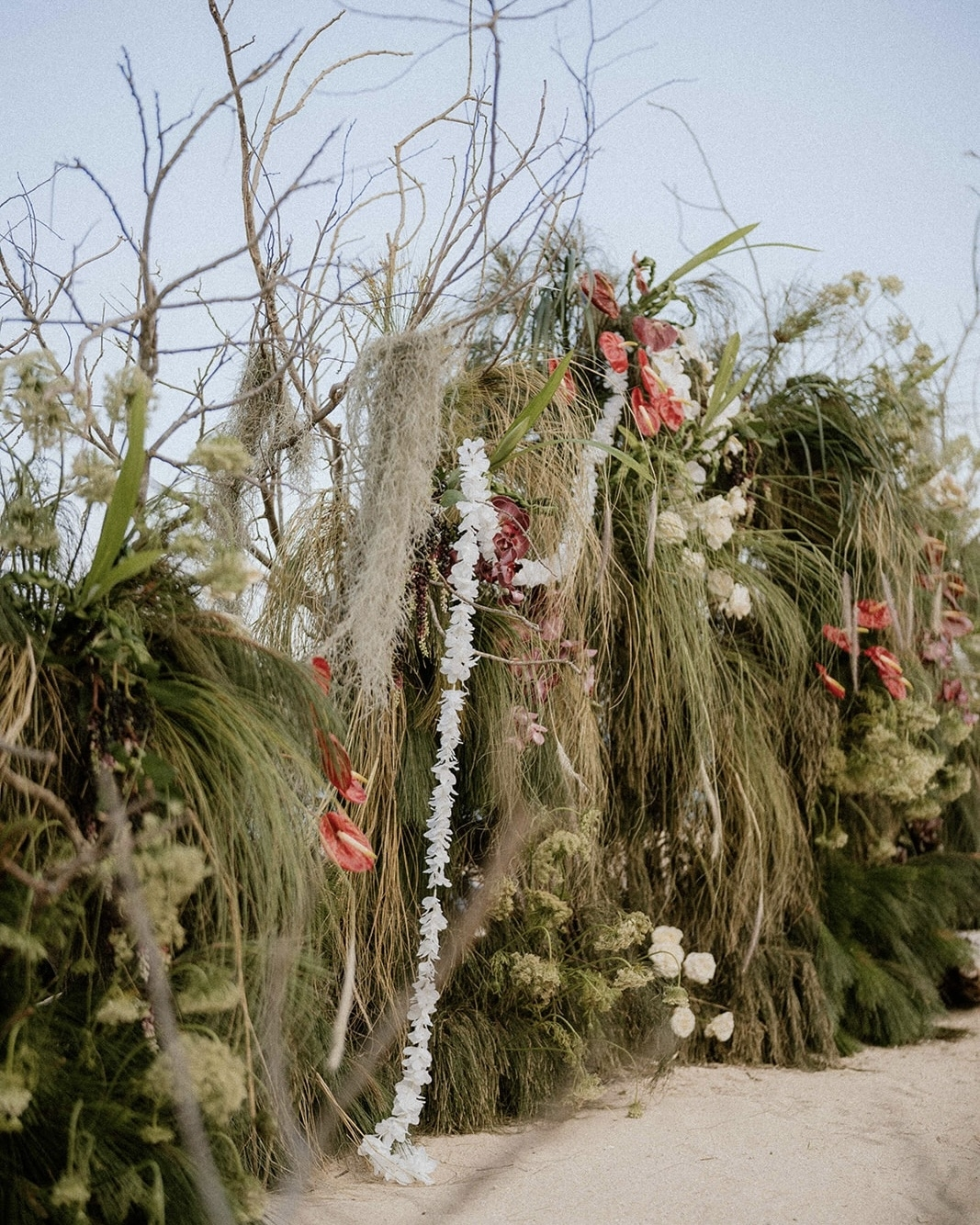 We wanted everything—our decor, our outfits—to reflect that spirit. I wanted to bring a part of me as an artist. For the entire decor and design, I envisioned something raw and honest, ethereal, and a bit futuristic, with a touch of Middle Eastern mysticism. I created a full wedding mood board, covering everything from decor and attire themes to table setting details—every little detail—creating an experience for our guests that felt different from a typical wedding. More like an open-air installation that truly expressed who we are as a couple.