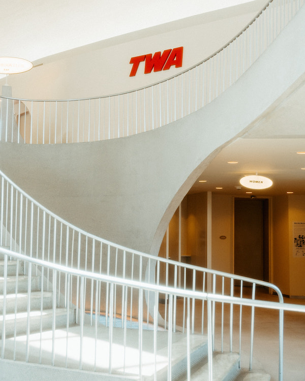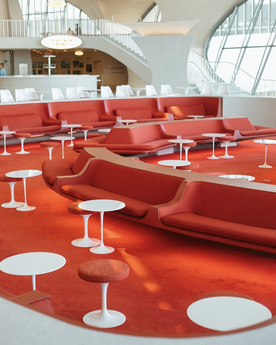 The TWA Hotel in NYC! Being in the design community, we already knew about this hotel for it’s incredible architecture and aesthetic. The bright red carpet-lined conversation-pit style lounge, gorgeous sweeping arched architecture, and 60’s TWA airplane-turned-cocktail bar on the tarmac outside, we had to go for it. We loved that we could bop between three different spaces throughout the wedding to keep it fun. Also, we knew the photos would be beyond.