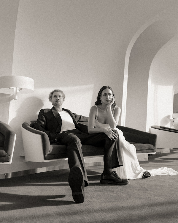 We didn’t have official bridesmaids or groomsmen, but our dress code literally said, “Feel free to go off!” I told all our guests to wear whatever they would feel fun and hot in, and not to worry about any traditional wedding guest rules. My brother wore a white linen suit with loafers that had embroidered lion heads on them.