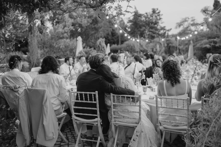 We kicked off the dancing with a waltz, followed by a special father-daughter dance to “In My Life” by The Beatles—a song my dad raised me on. The dance floor was electric, with our guests absolutely shutting it down! For those who needed a break, we had a cozy area set up in the courtyard where they could relax and soak in the beauty of Portugal under the light of the full moon.