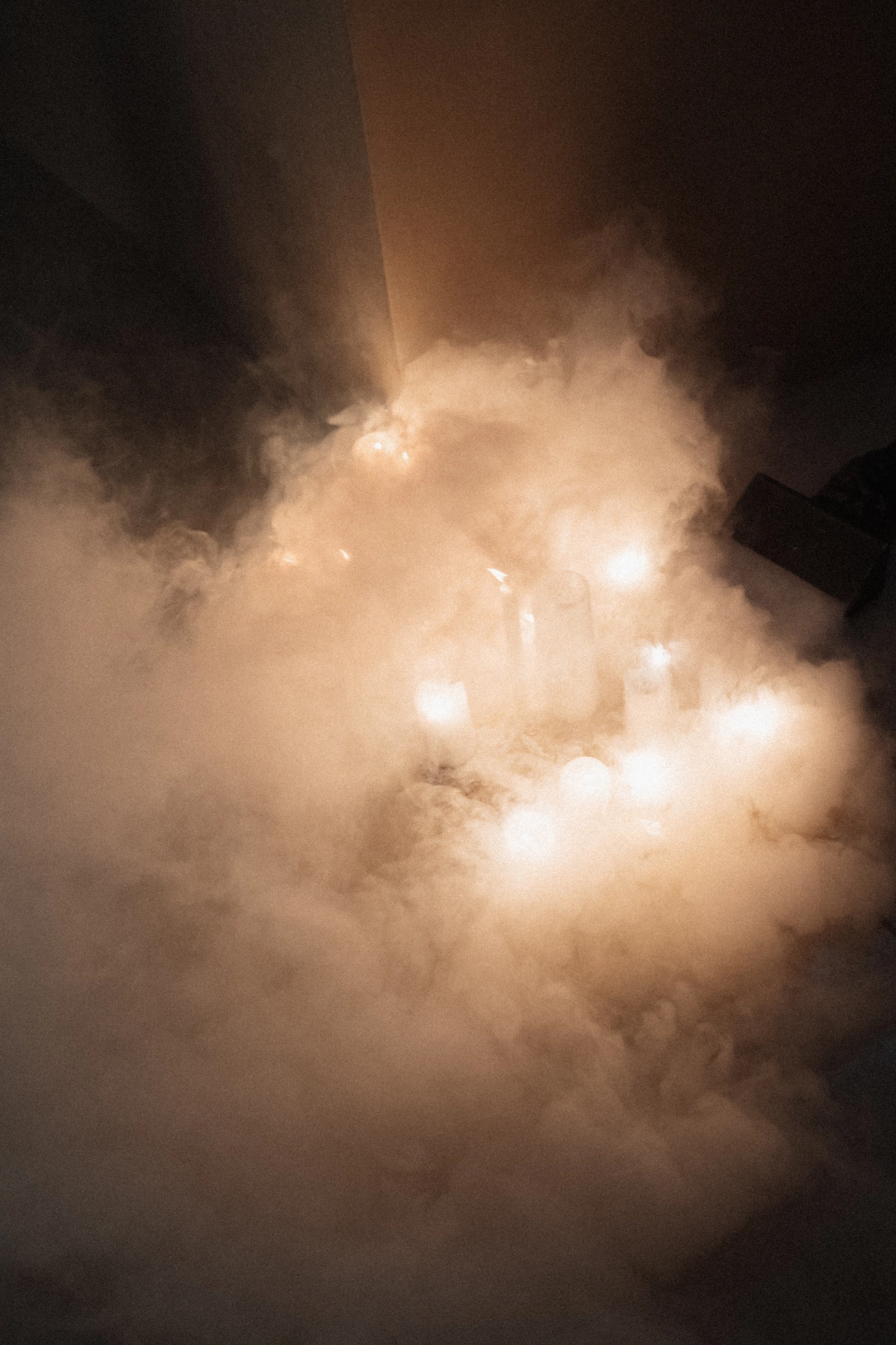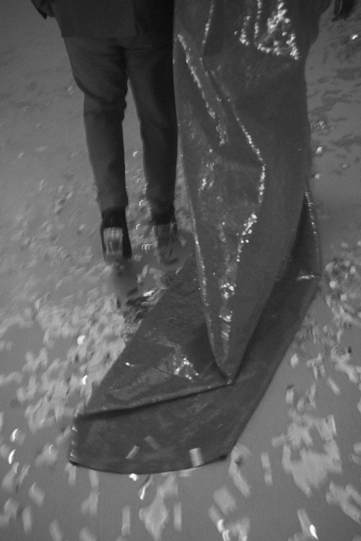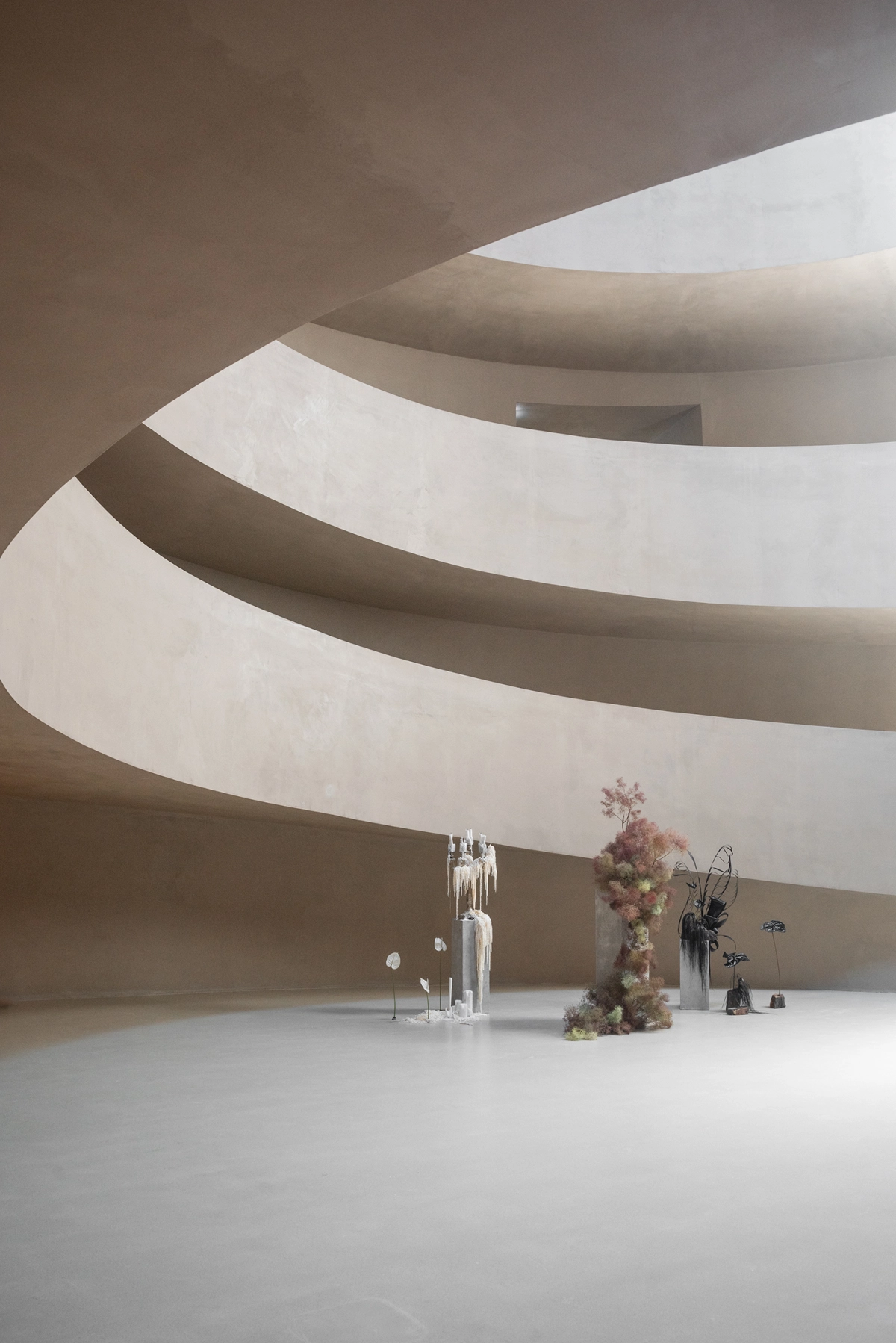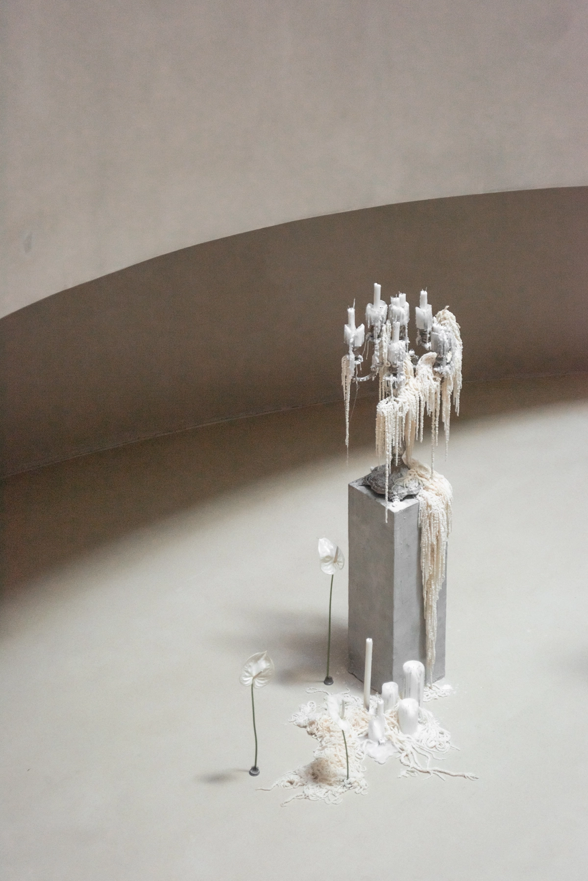 The floral arrangements for the wedding were masterfully crafted by the talented team at Bosque Concept. For the ceremony, they designed sculptural, intricate, and very textural compositions. To convey a contemporary art gallery vibe and evoke distinct moods and energies, Bosque Concept created a set of three different plinth installations. Then, for the reception, they embraced the bride's love for Ikebana style, crafting a mix of minimalistic aesthetic florals that complemented the entire styling.