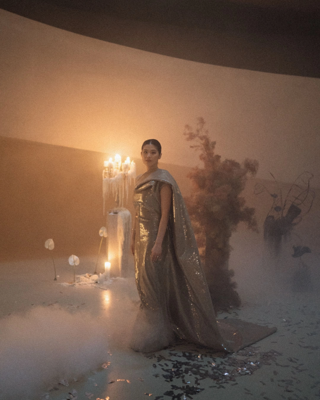 To accentuate the contrast between the decoration and the venue's sleek architecture, the team went with a bold choice of colors — dark burgundy tones with hints of black.