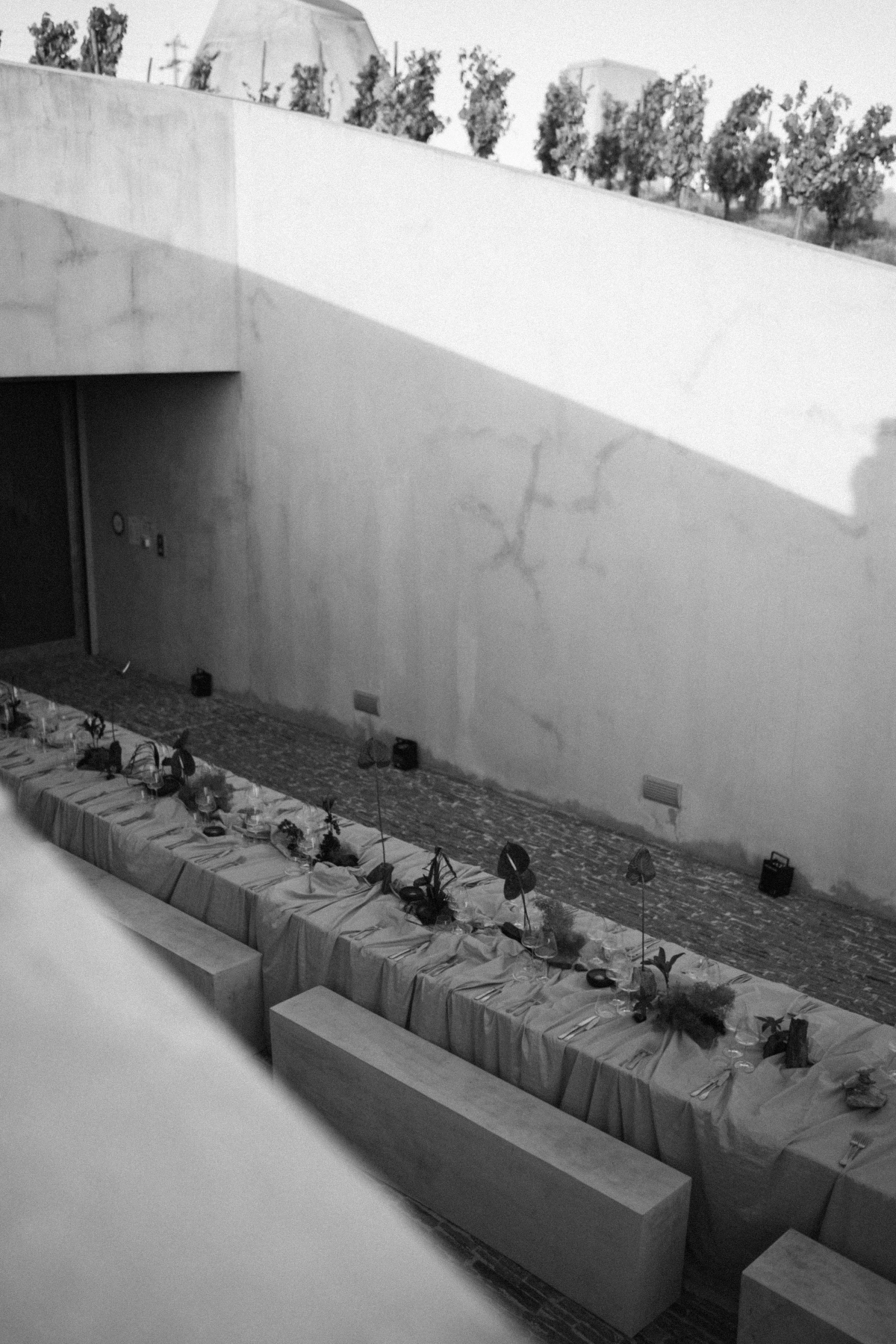 Held at the Herdade do Freixo, Grace and Vincent’s wedding was nothing short of spectacular. The couple exchanged vows in a beautiful, intimate ceremony 40 meters below ground, inside the one-of-a-kind subterranean winery. After the ceremony, the celebration continued with dinner and party, all happening outside surrounded by vineyards and the winery's brutalist architecture.