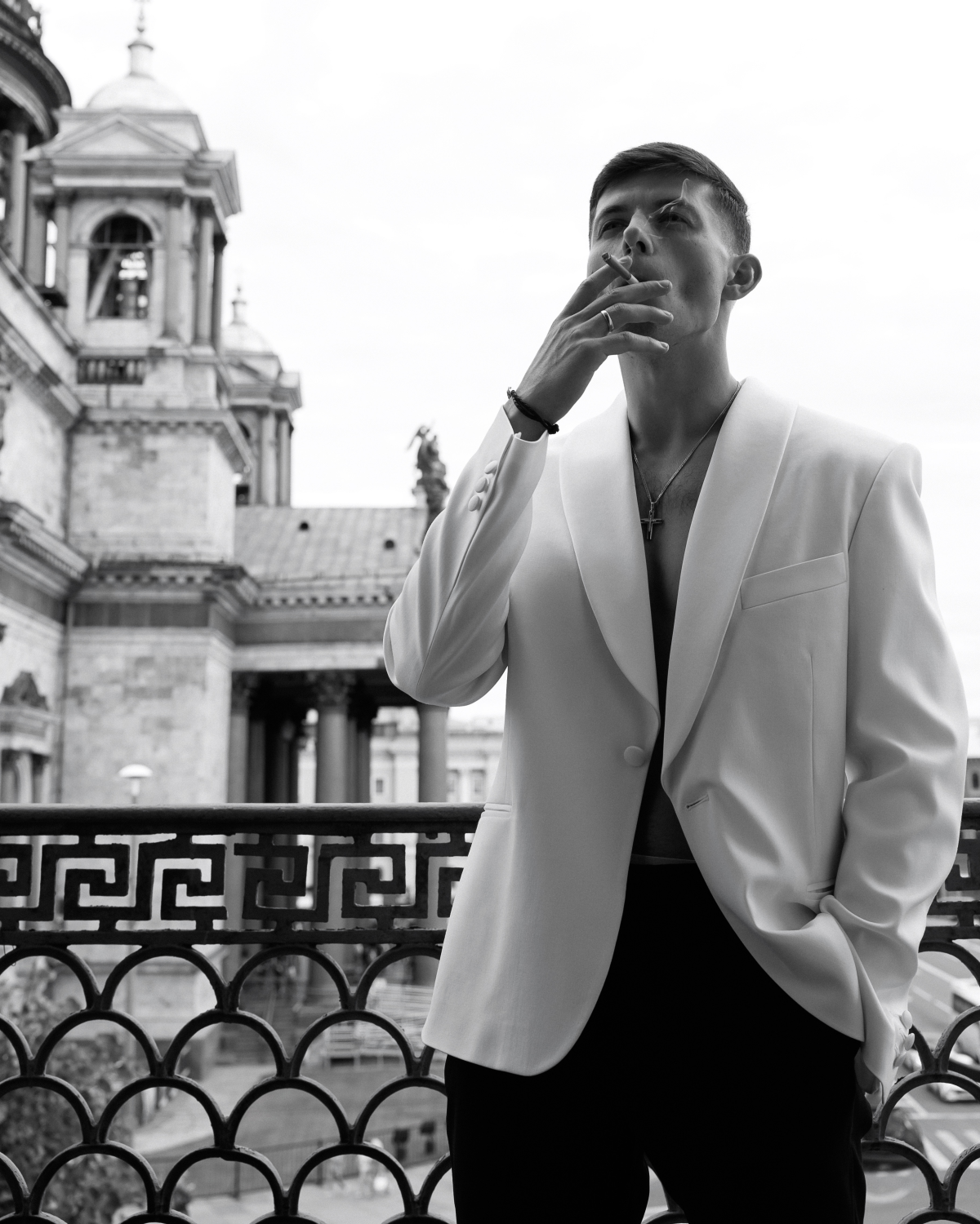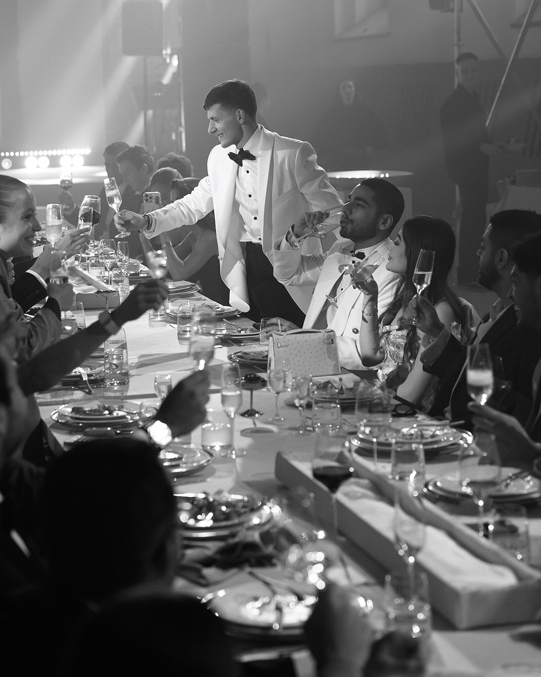 Roman looked effortlessly sophisticated in a classic black-and-white N68 suit, paired with a sleek black bow tie.
