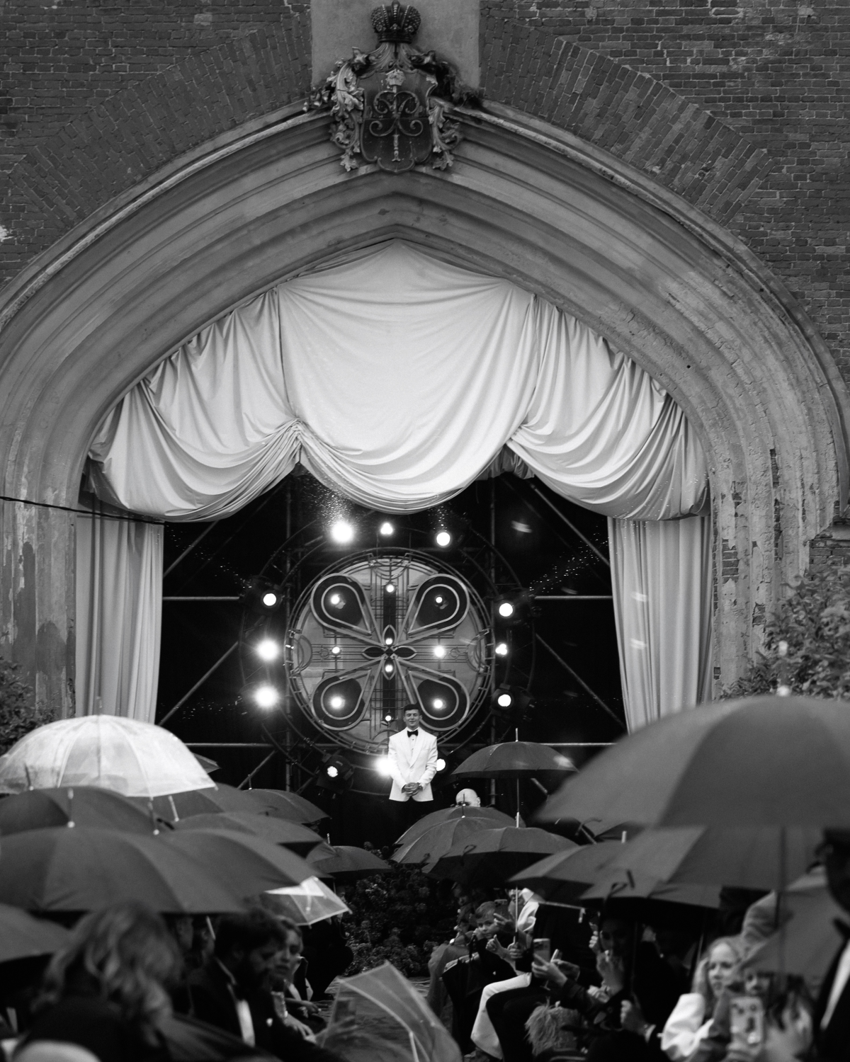 The weather on our wedding day was rainy, but it added a certain magic and intimacy to the moment. The ceremony took place outdoors, followed by dinner inside the Imperial Stables. The architecture — soaring wooden vaults and grand windows — was breathtaking. Our agency decorated the stage with a monumental bas-relief designed exclusively for our wedding. It blended so seamlessly with the historic space that it felt as though it had always belonged there. That’s the kind of detail that makes everything come alive.