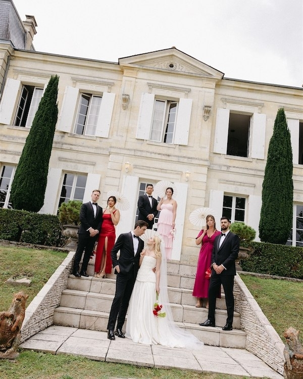 We rented out two French countryside châteaus and stocked them full of food and wine for 3 days to ensure everyone’s stay was comfortable. The main estate, Château de Garde, hosted the wedding festivities and 50 guests. The other, Château de Birot, was more intimate with 15 guests. We couldn’t have asked for a more perfect venue for the wedding. The brief was simple, we wanted somewhere that could house everyone privately for multiple days, had a pool for daytime festivities, and a fireworks license (Trav’s number one request). It was love at first video tour.
