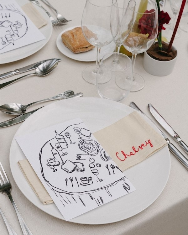 We’re big believers in trusting people to do what they do best. Ekaterina was a true talent with everyone’s hair and makeup while India and Samantha from Best Events Co created stunning, organic floral arrangements and tablescape design. Brian from Loose Covers played piano during the ceremony and cocktail hour before turning it out for an all night DJ set. We still fantasise about Maison DuLou’s oyster tower and grilled seafood stand during cocktail hour. Tessa, from Tessa Shannon Photography, is one of our closest friends. She captured our wedding portraits and then joined the ceremony onwards as a guest, entrusting Petra Marton as her second shooter. Jeremie from the Quirky created footage we’ll watch on repeat forever. Finally, we commissioned HeresToYou on Etsy for custom illustrations, which we used to tie everything together. We couldn’t be more grateful to the whole team.