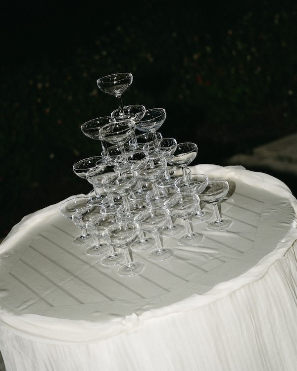 After fireworks, we had our first dance to our song while guests surrounded us with sparklers. Father-daughter and mother-son dances followed before I made a quick dash to change into my mini dress. We’re not big dessert people, so rather than cutting the cake we opted to ‘cut the bottle’ and sabred two large bottles for a champagne tower. As guests were grabbing glasses, a croquembouche tower with sparklers came out for those guests with a more solid sweet tooth.