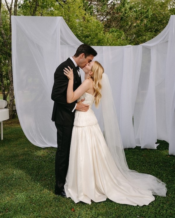 Jacqueline & Travis's wedding was a breathtaking celebration of love, set against the timeless beauty of a French countryside château. Their intimate ceremony unfolded under a draped altar, surrounded by vibrant, lush florals that seemed to echo the natural splendor of the surroundings. As the evening continued, guests were treated to an unforgettable reception – a dinner party filled with laughter, delicious food, and personalized touches, like the intricate embroidery of each guest’s name on their napkin, carefully crafted by the bride herself. The night sparkled with espresso martinis and a dazzling display of fireworks. Jacqueline's bespoke bridal gown, a stunning homage to the 1940s Dior silhouette and vintage French style, was the perfect reflection of her elegant vision. Every magical moment was captured by photographer Tessa Shannon.