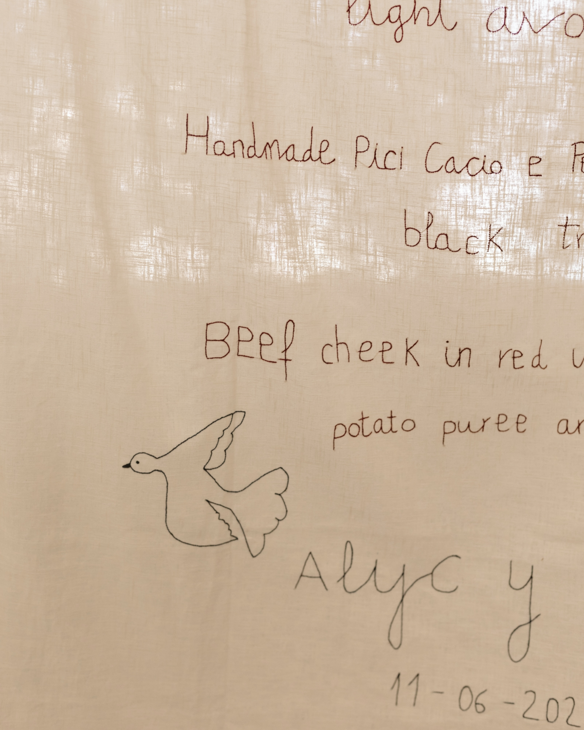 Our wedding was filled with meaningful details that made the day truly unique. We had live watercolor paintings capturing portraits of our guests, creating a beautiful keepsake of the celebration. Additionally, we had hand-embroidered napkins for guests to take home, each one a personalized reminder of the occasion.