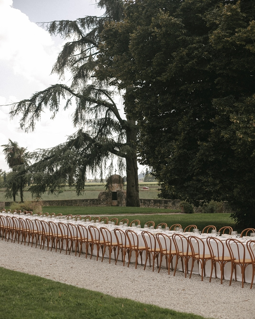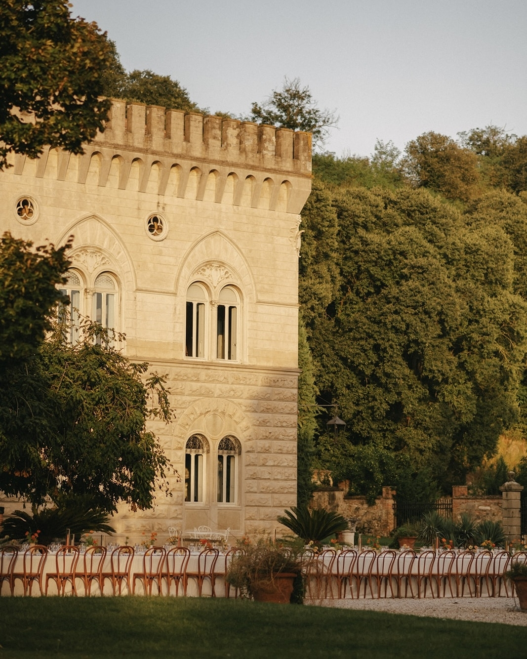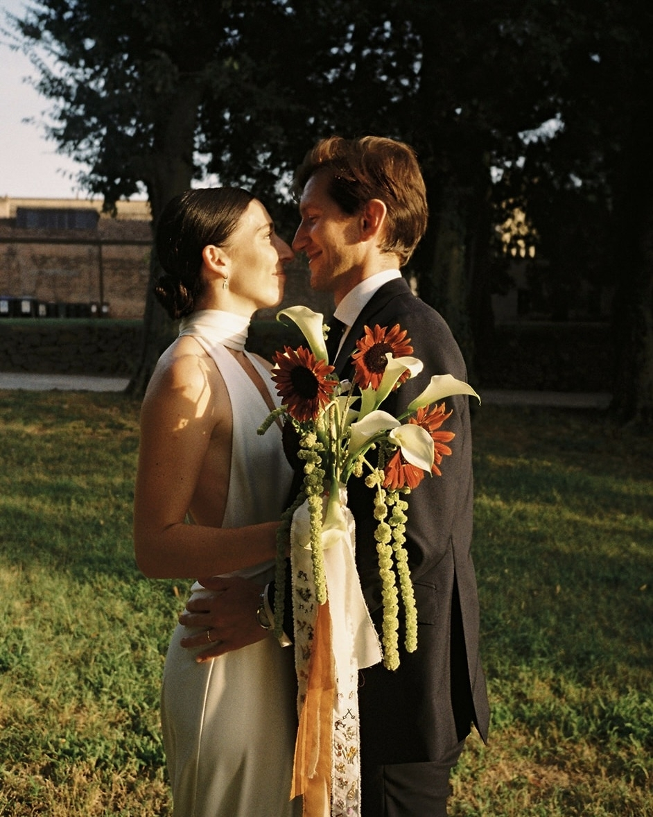 Our idea had always been to have an intimate, very personal wedding where warmth took centre stage—reflected in the choice of lighting, colors, music, flowers, and seating arrangements. We envisioned a weekend of togetherness, where the people we love most could share moments of connection. Choosing a historically charged venue was also important to us, blending the past with contemporary touches, as well as our Spanish character and traditions with the Italian landscape and way of life.
