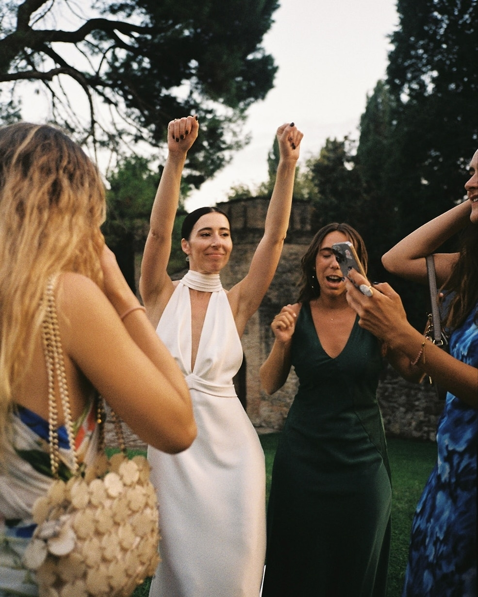 It was without a doubt our favorite moment. With the castle as our backdrop, surrounded by nature and Cinzia Bettini’s enchanting flower arrangements, our friends Carolina and Guillermo officiated the ceremony, moving us from hearty laughter to quiet tears. They unveiled old messages for the first time, shared collective memories that included everyone present, and remembered those who hold a special place in our hearts. The emotional speeches from our family and friends were the golden thread that tied everything together. It was a magical moment we will cherish for a lifetime.