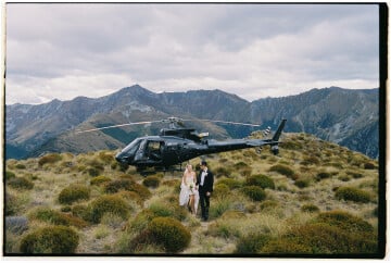 The helicopter surprise. At a nearby helipad, we told Joel we were heading out for bridal party photos (they were all in on it). As a black helicopter approached, Joel jokingly pretended to wave it down like a traffic controller—until I said, “This is for us.” His face was priceless. We’d considered a helicopter in the early planning stages but weren’t sure if we wanted to step away from guests. But it was so worth it. We had precious time to ourselves, flying over Coromandel Peak—a picture-perfect moment.